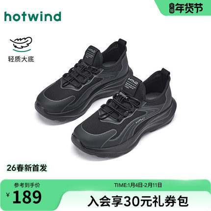 热风男鞋2026年春季新款男士时尚休闲鞋黑色百搭老爹鞋运动慢跑鞋