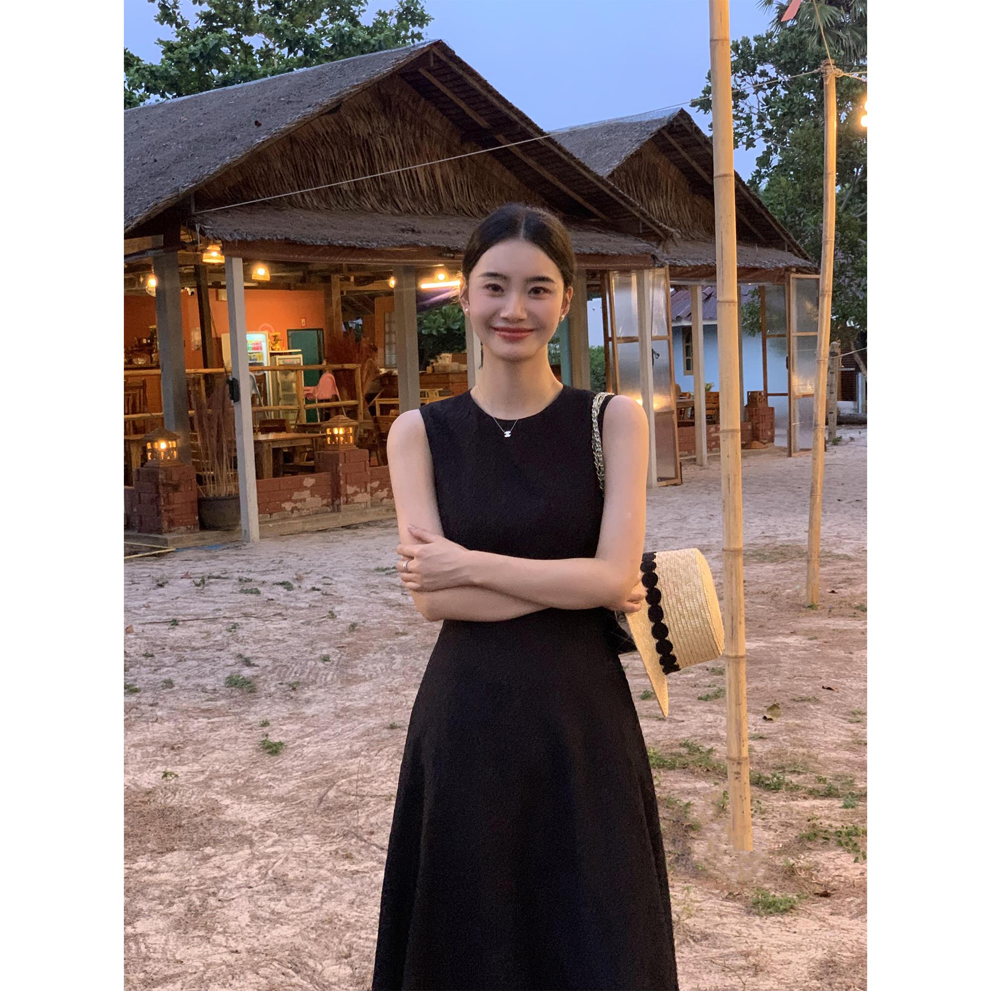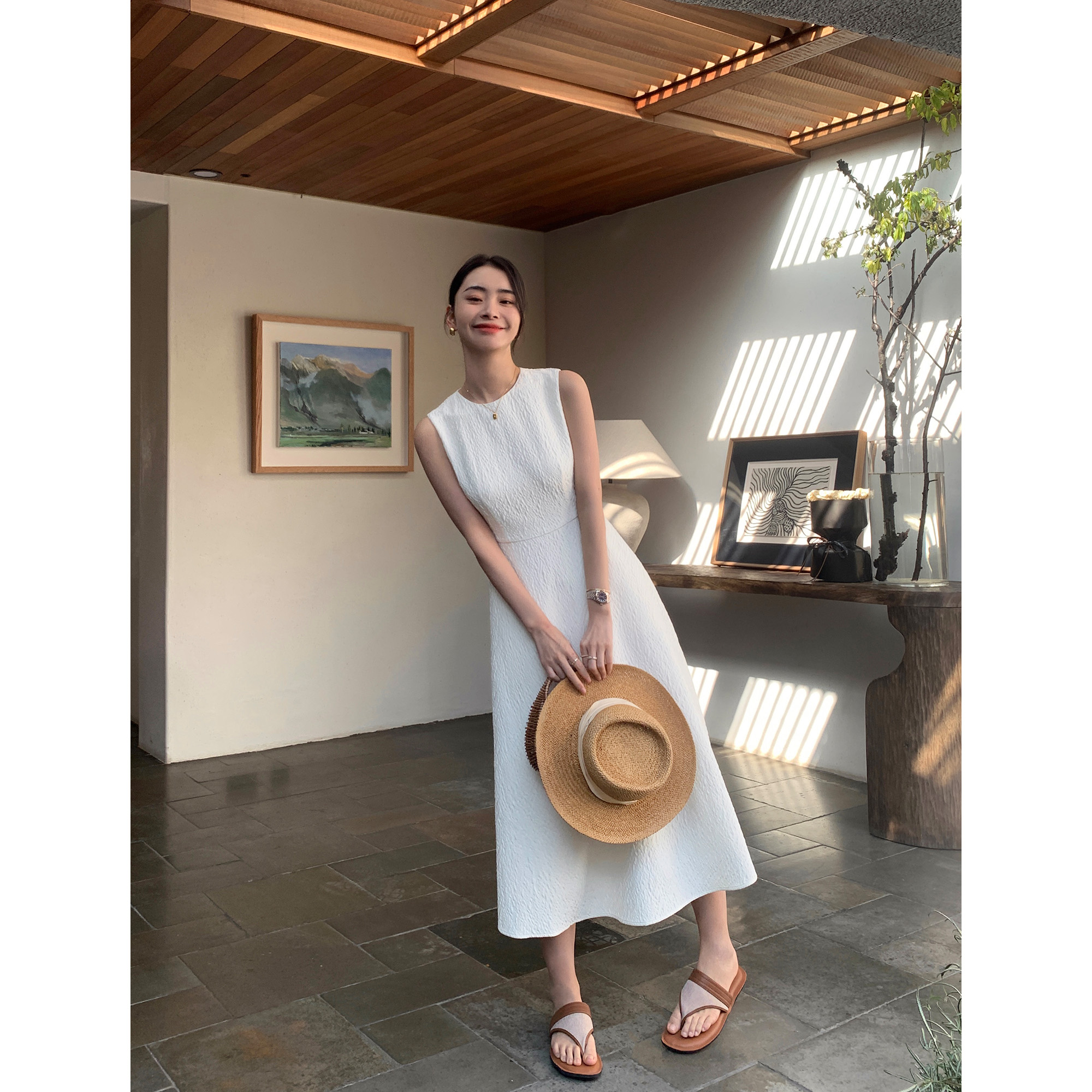 高级感白色背心连衣裙春夏季款法式气质长裙无袖收腰肌理感裙子
