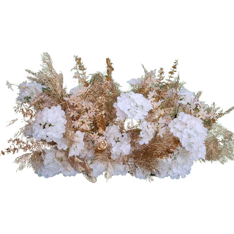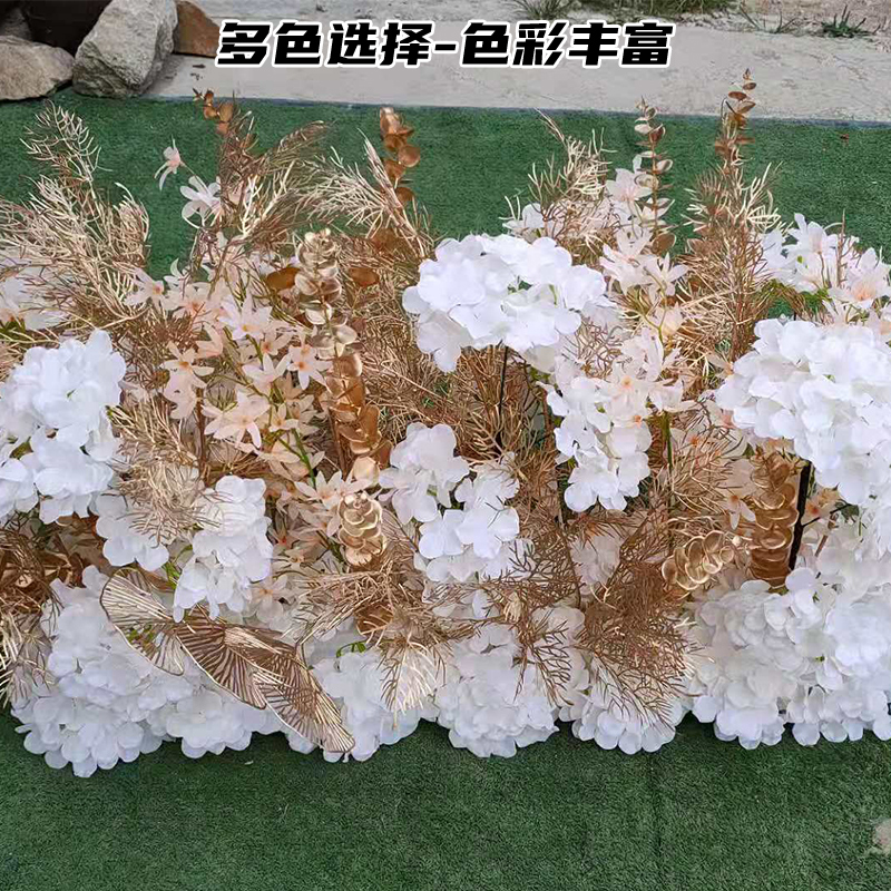 香槟金白路引花排假花仿真花背景装饰婚庆花艺舞台布置地排花桌花