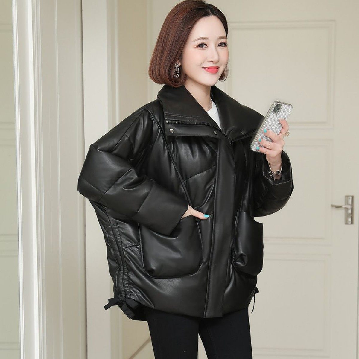 洋气真皮宽松短款皮衣绵羊皮外套