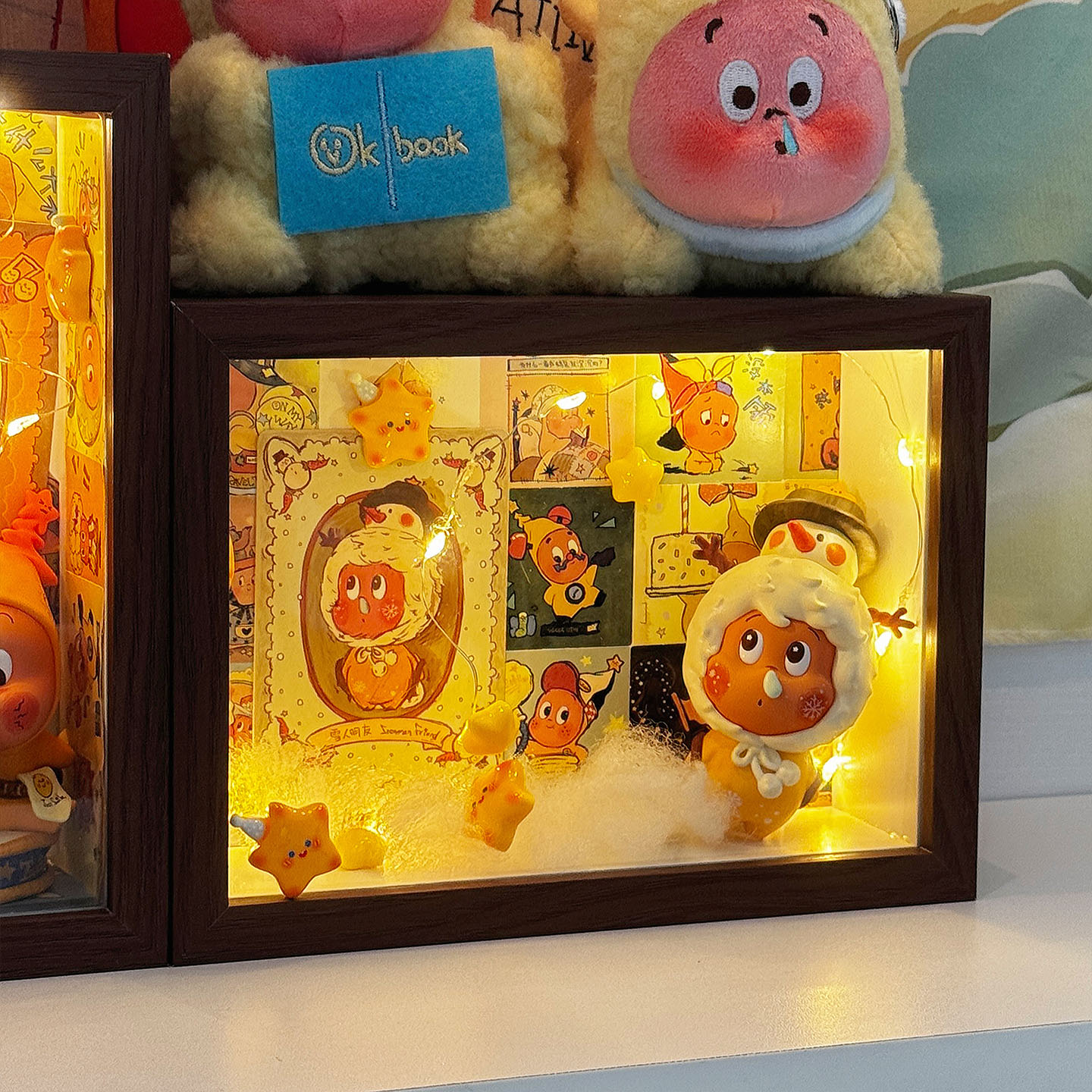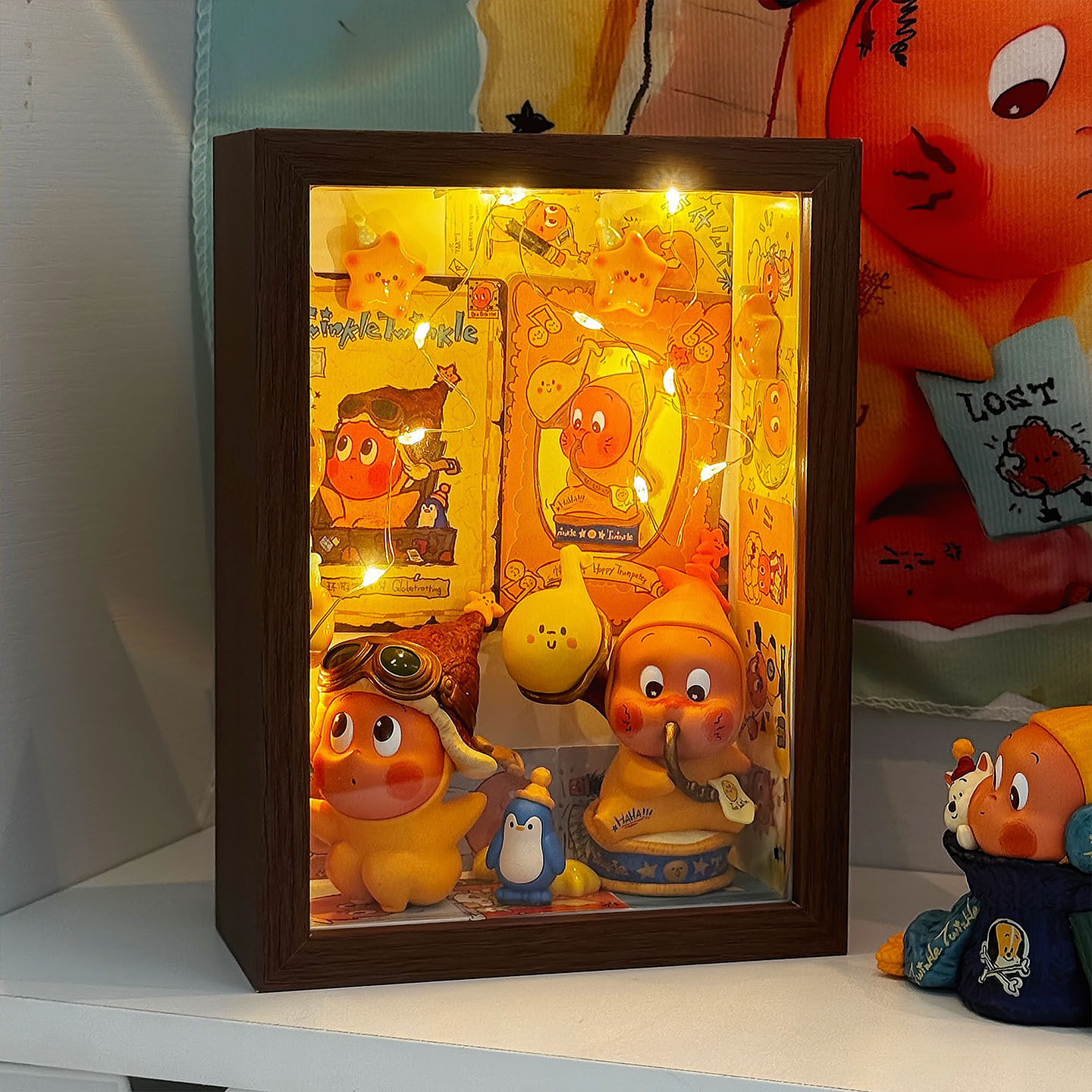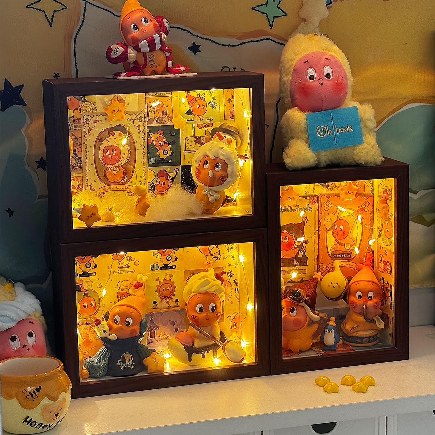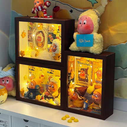 星星人收纳展示盒手办盲盒摆件立体中空展示架防尘灯DIY造景相框