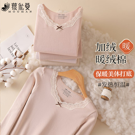 保暖内衣女士低领加绒加厚发热美体修身秋衣秋裤棉打底衫内穿冬季