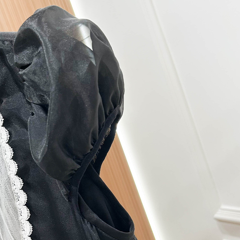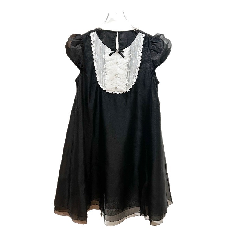 2025秋季新款女士法式千金甜美公主风裙子圆领拼接蕾丝短袖连衣裙