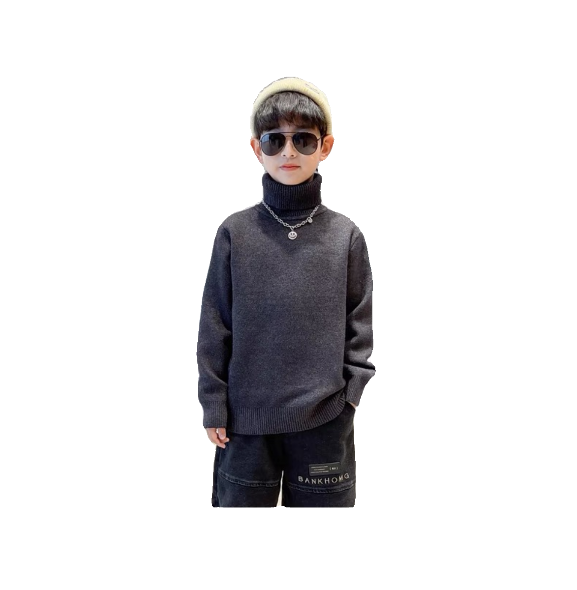 冬季新款男童加绒加厚高领毛衣男孩中大童保暖一体绒打底针织衫