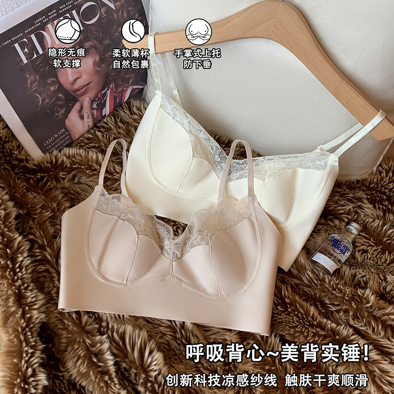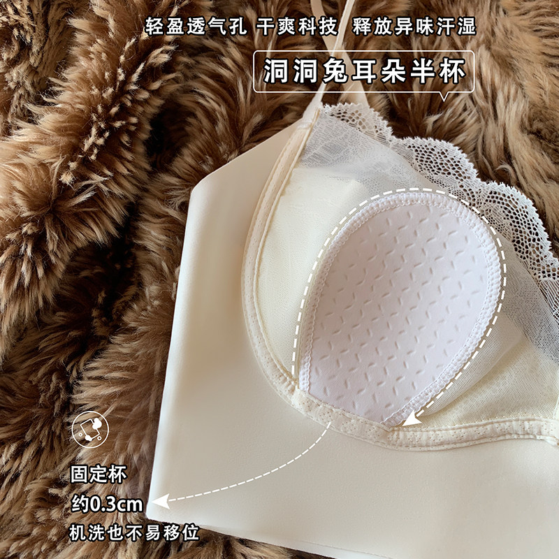 法式美背蕾丝性感内衣女薄款兔耳朵吊带抹胸大胸显小胸收副乳文胸