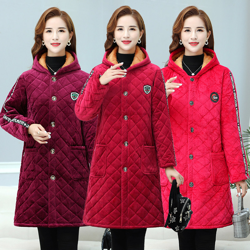 中长款金丝绒棉服冬季女装棉袄加厚加绒省服保暖罩衣加肥加大外套
