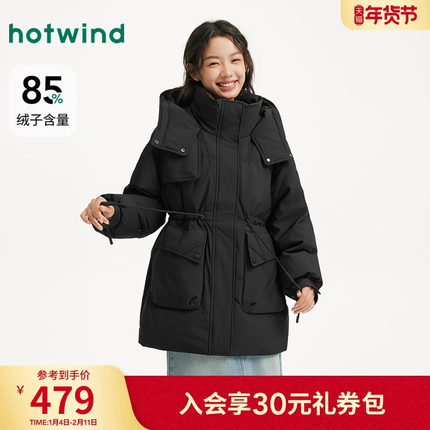 热风2025年时尚收腰连帽羽绒服