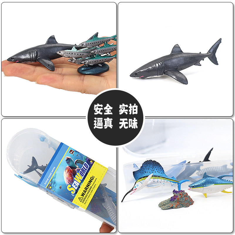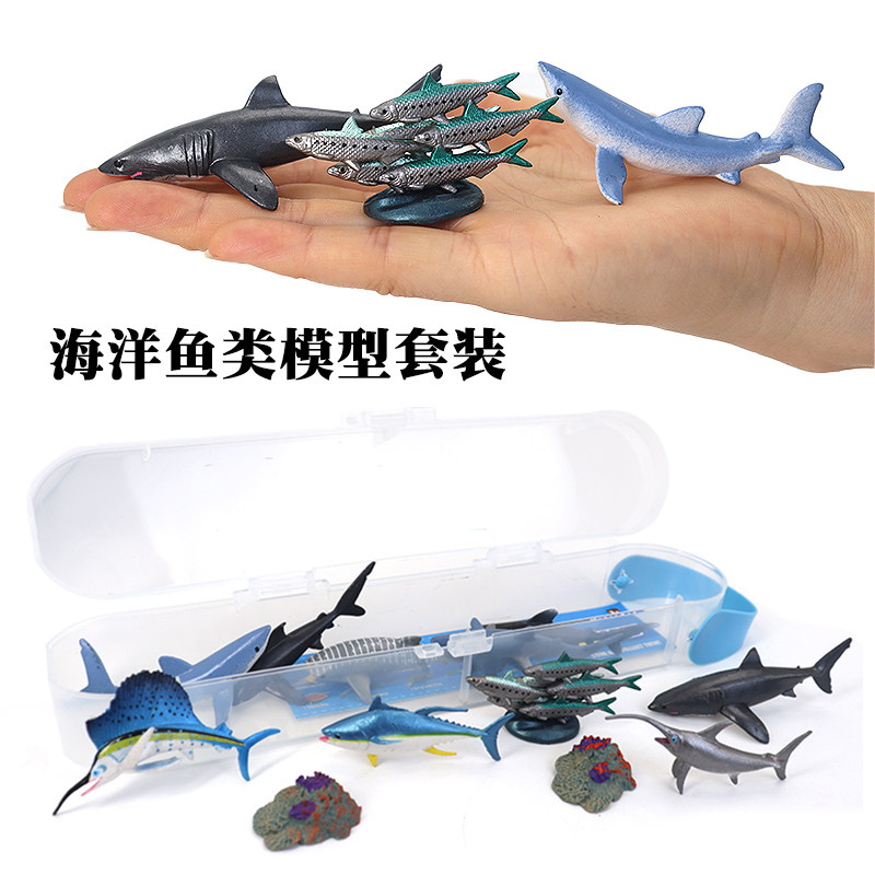 仿真海洋鱼收纳盒装海洋金枪鱼模型沙丁鱼玩具旗鱼塑胶儿童礼物