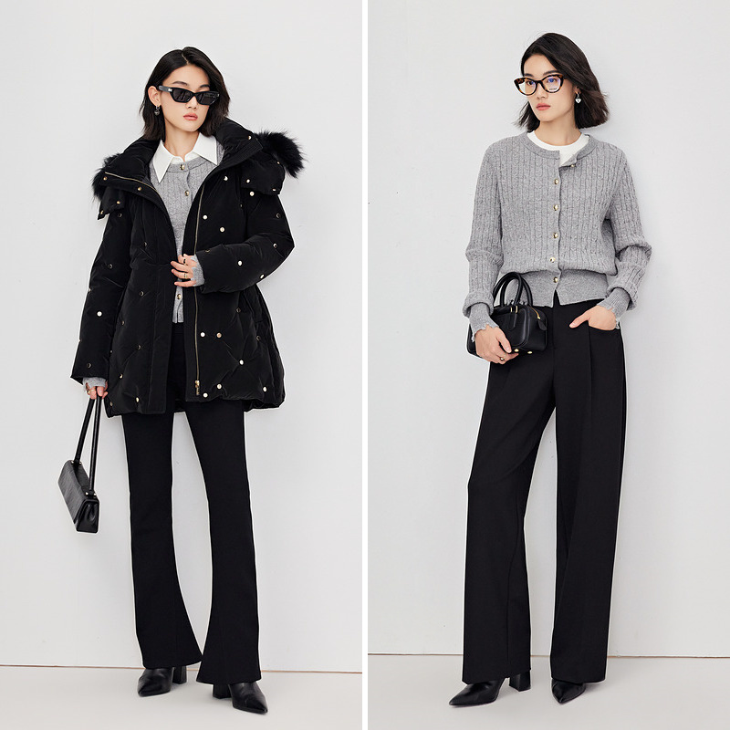 FF仿佛冬季新款灰色针织衫女开衫假两件长袖上衣外套设计感