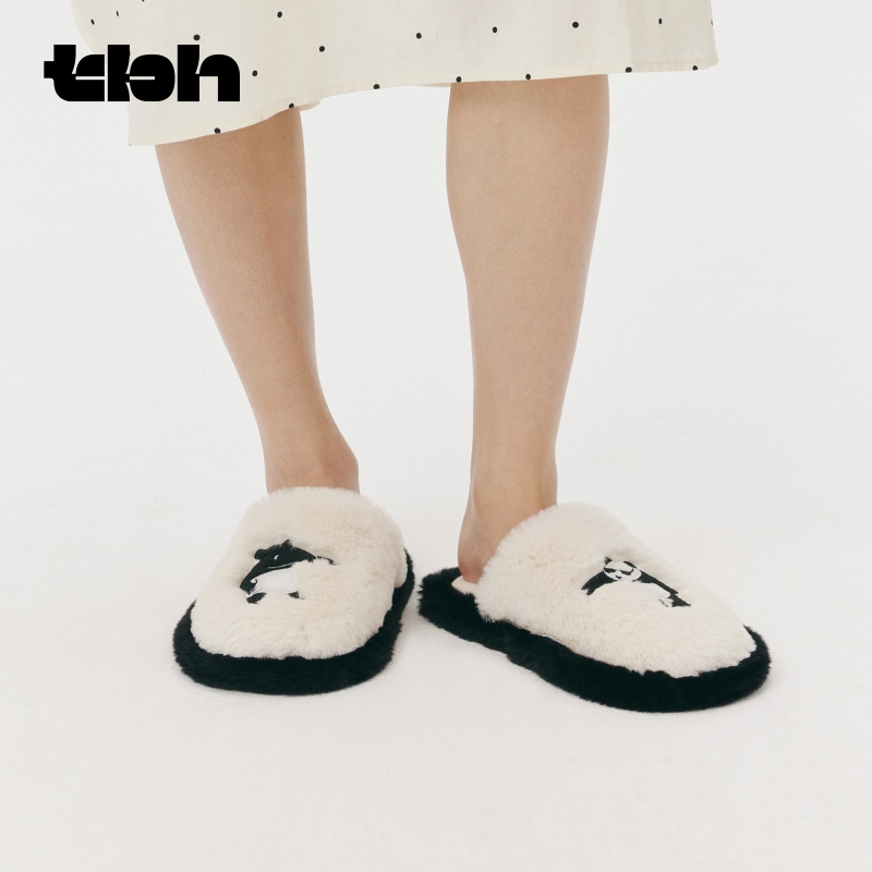 tbh野兽派家居熊猫嘭嘭毛绒拖鞋可外穿室内鞋子冬季情侣家居鞋*