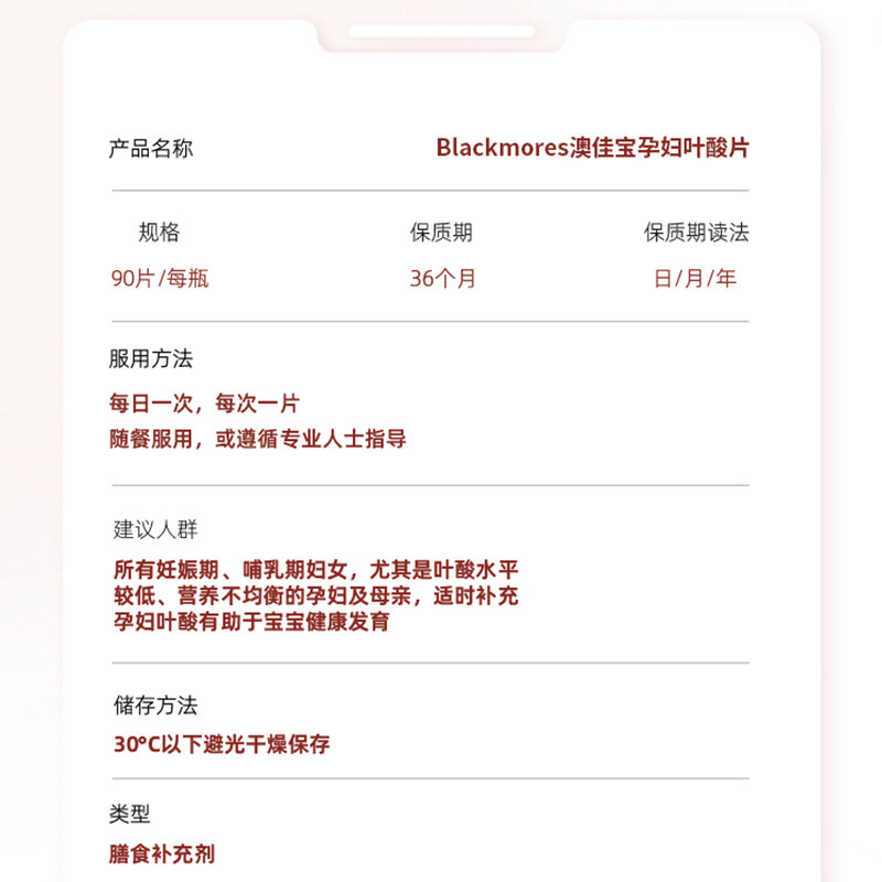 BLACKMORES澳佳宝叶酸片备孕90粒