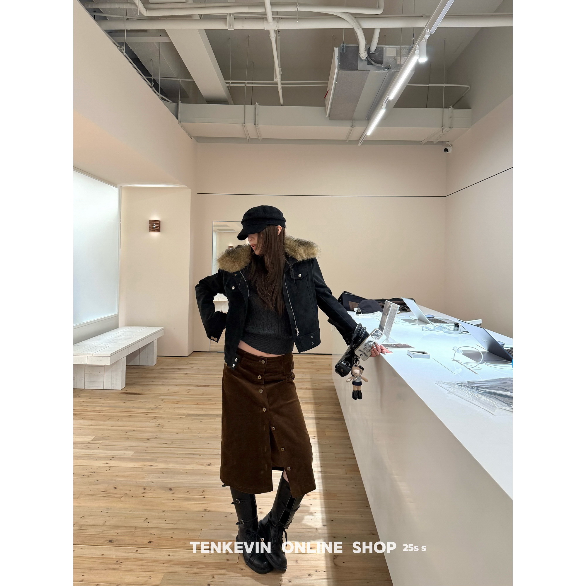 十一石 摩登冬日复古百搭灯芯绒A字半身裙女宽松显瘦包臀中长裙II
