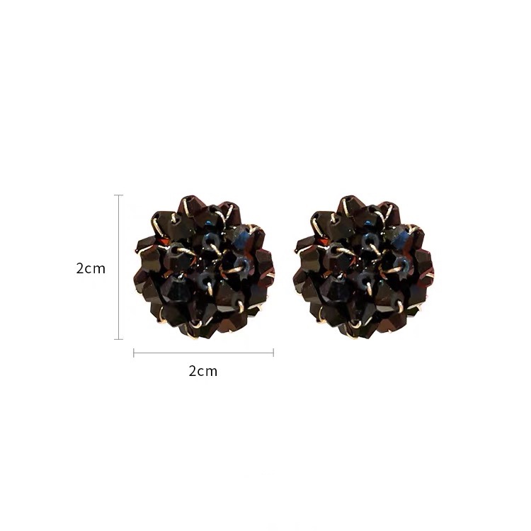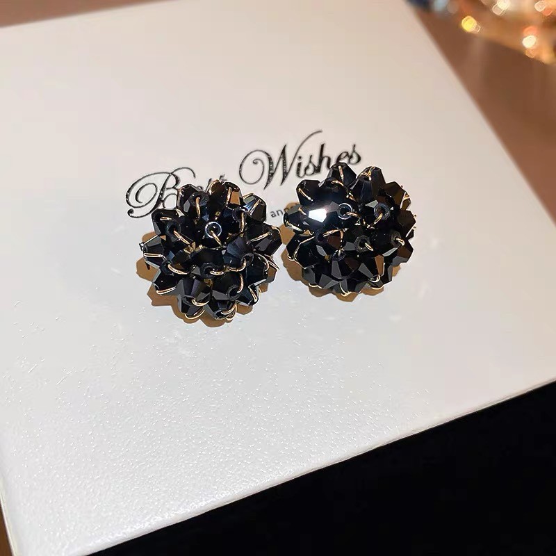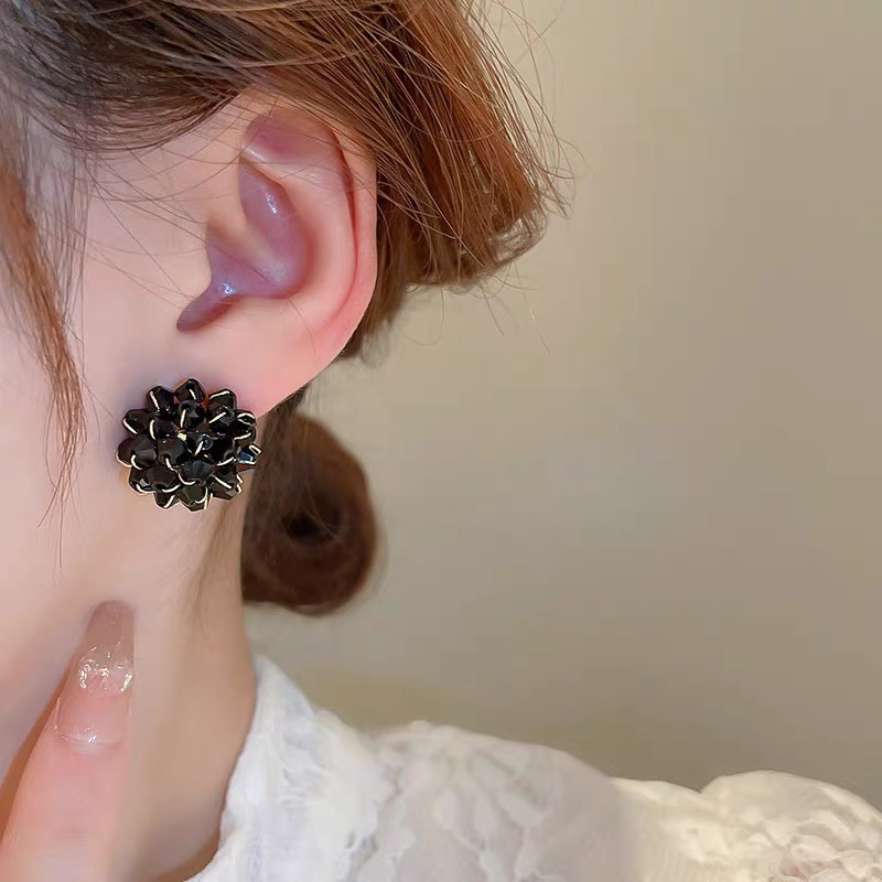 法式复古黑色水晶花球耳钉 设计感小众耳环 新款时尚个性百搭耳扣