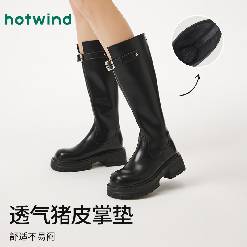 热风厚底骑士靴女2025年冬季新款复古增高长筒靴子小个子粗跟女鞋