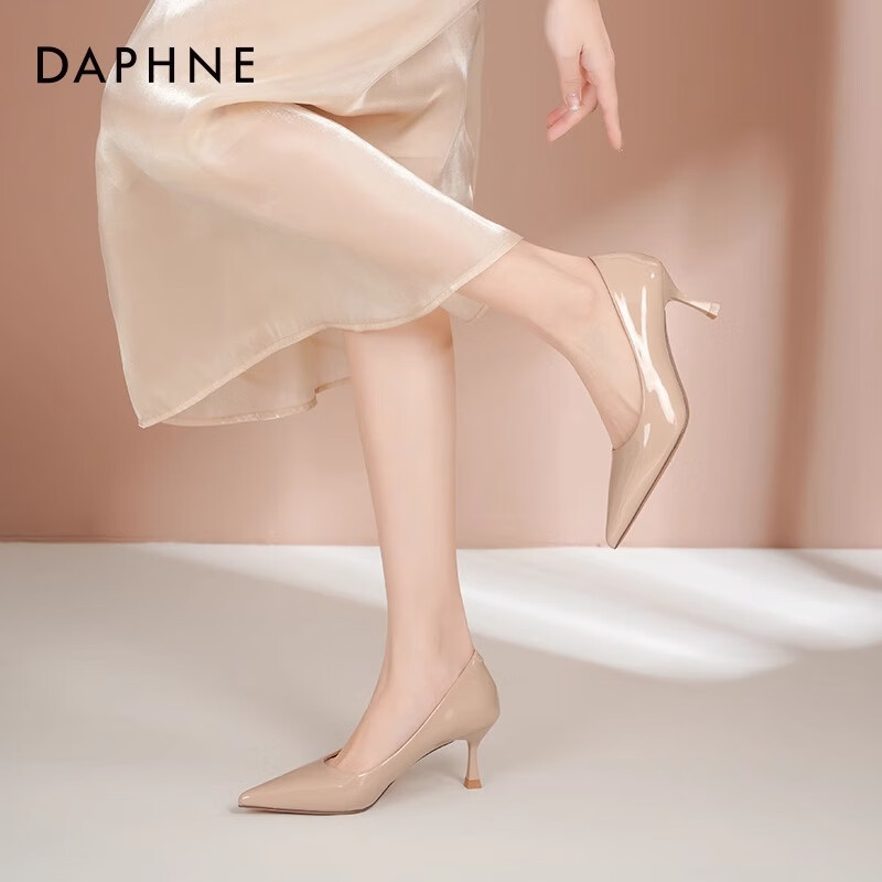 达芙妮裸色高跟鞋女2025秋季爆款通勤女鞋气质尖头细跟单鞋子女