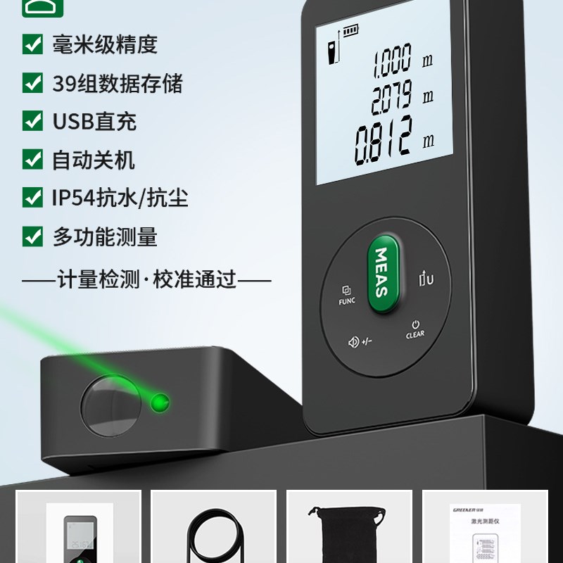测距仪激光电子尺m绿光户外测量仪高精度多功能手持量房尺神器