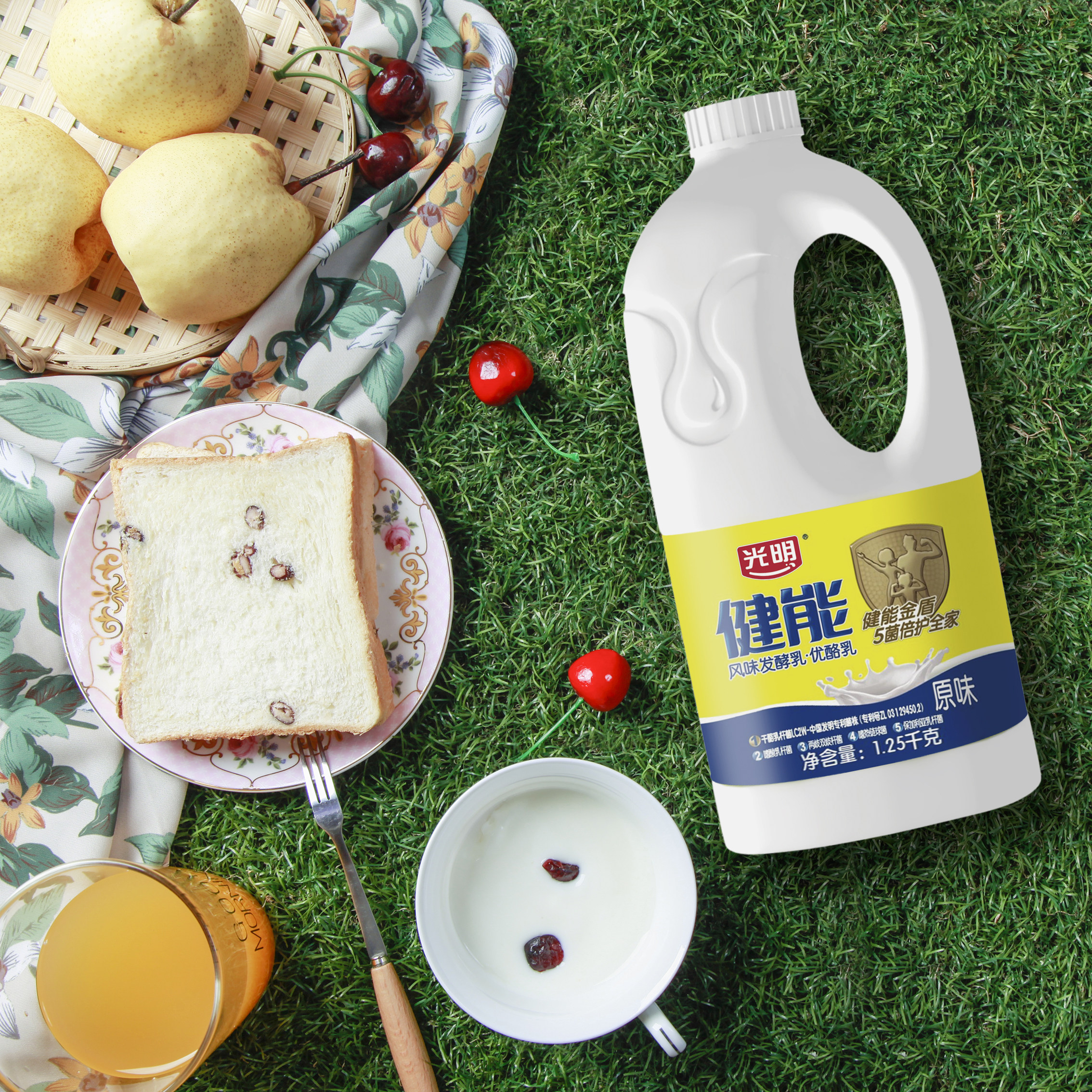光明健能酸奶1.25㎏桶装发酵乳优酪乳早餐水果捞搭档