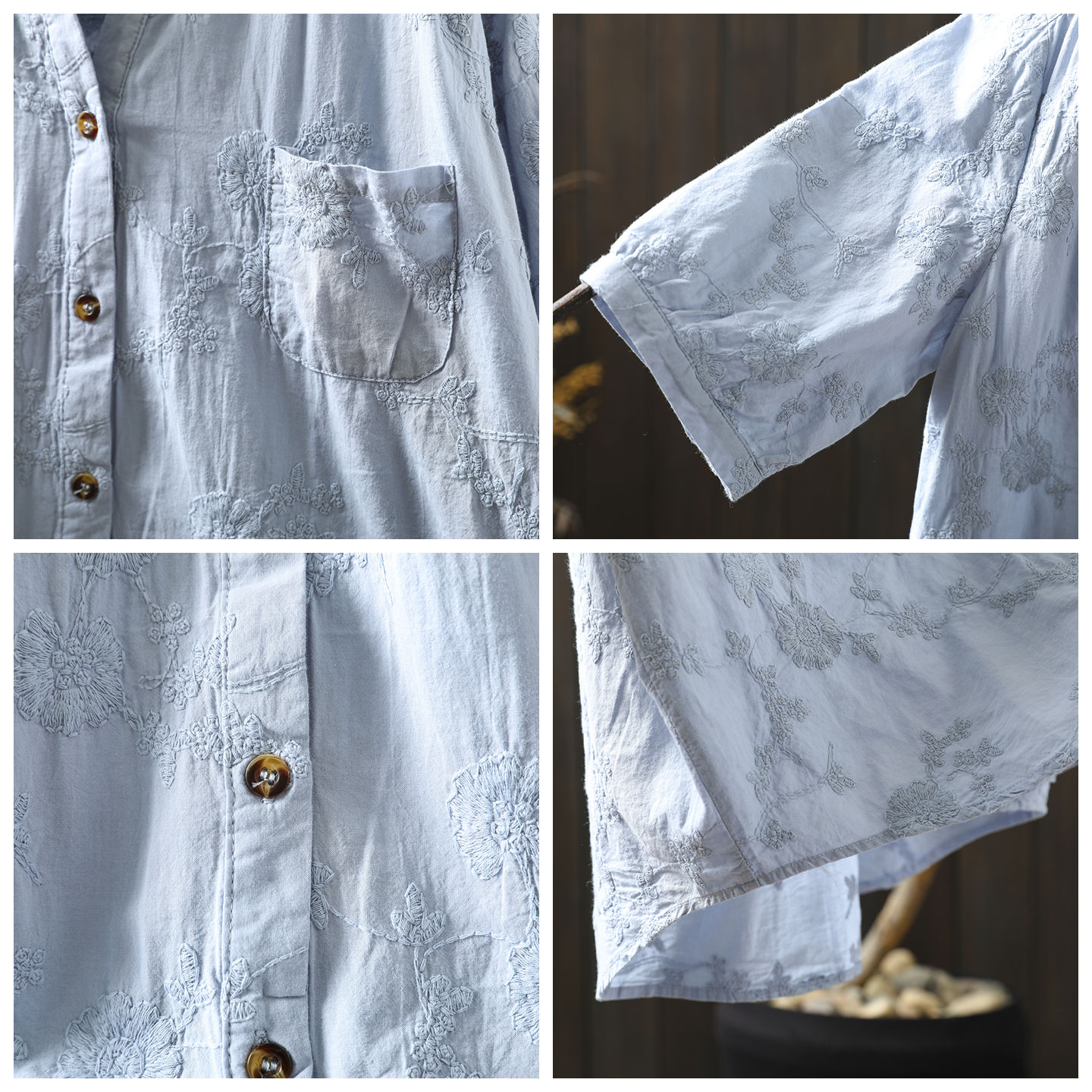 白衬衫女上衣刺绣提花纯棉长袖2025新早秋花边领轻熟气质打底衬衣