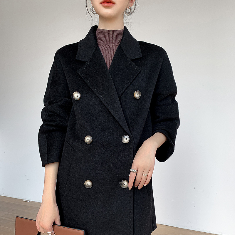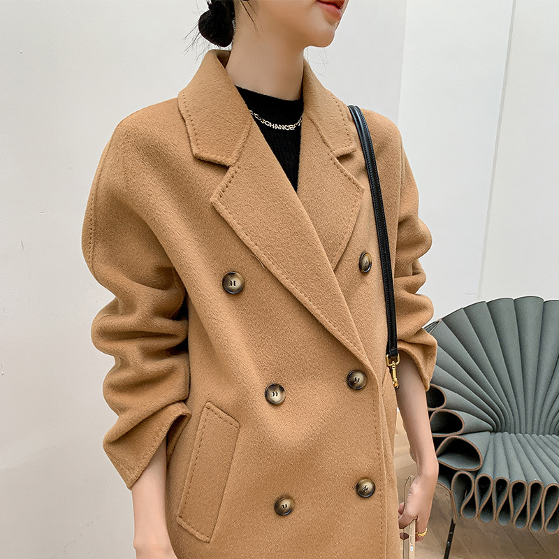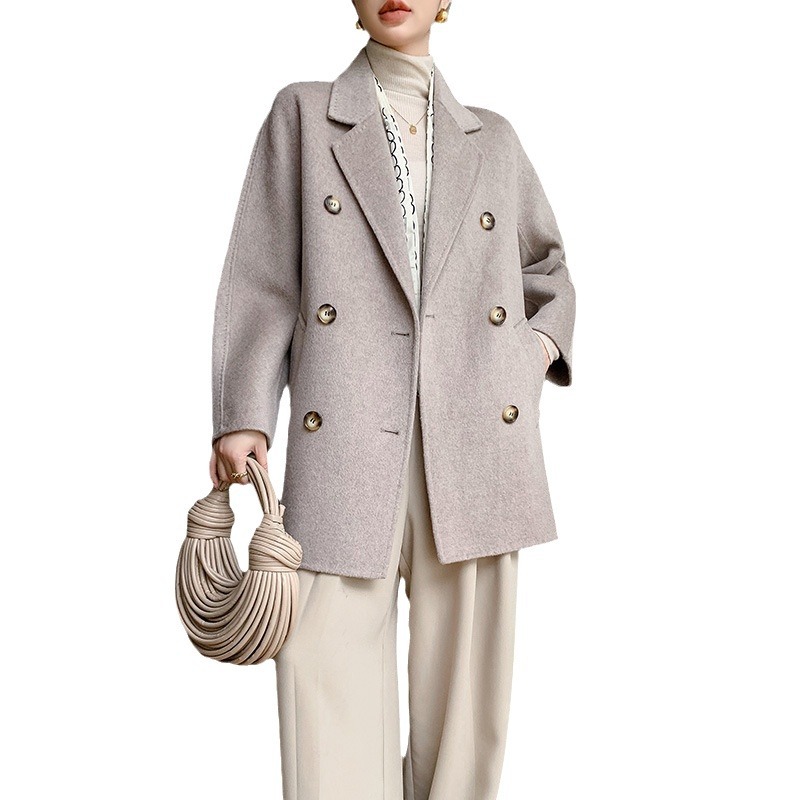 双排扣韩版双面羊绒大衣女小个子短款时尚秋冬加厚纯羊毛呢子外套