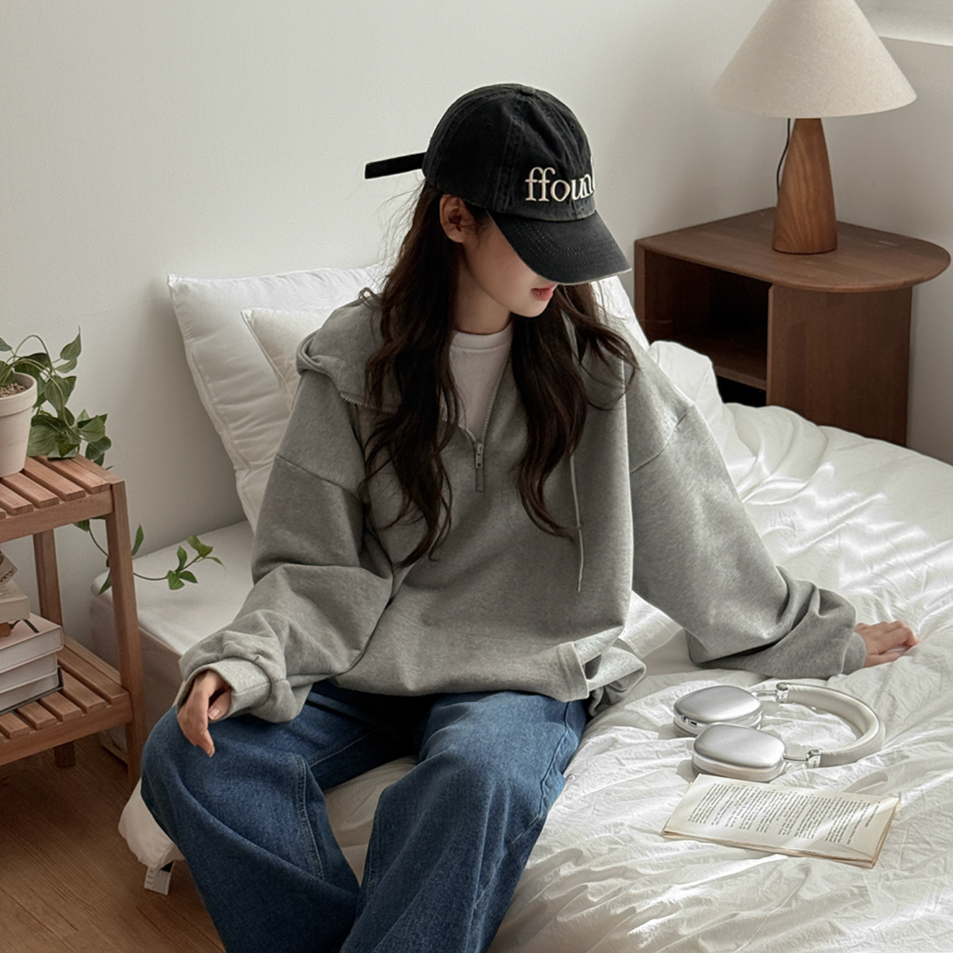 韩国大码女装胖mm秋装新品时尚纯色半开襟拉链领连帽宽松卫衣106