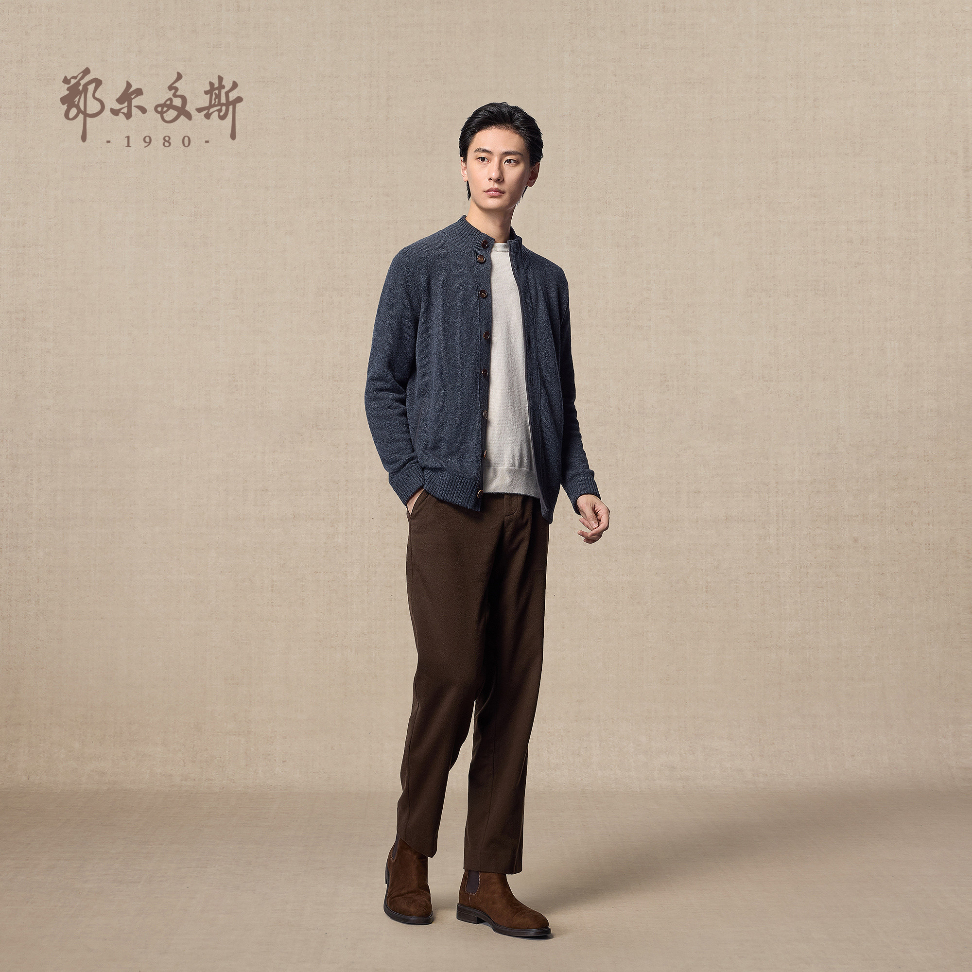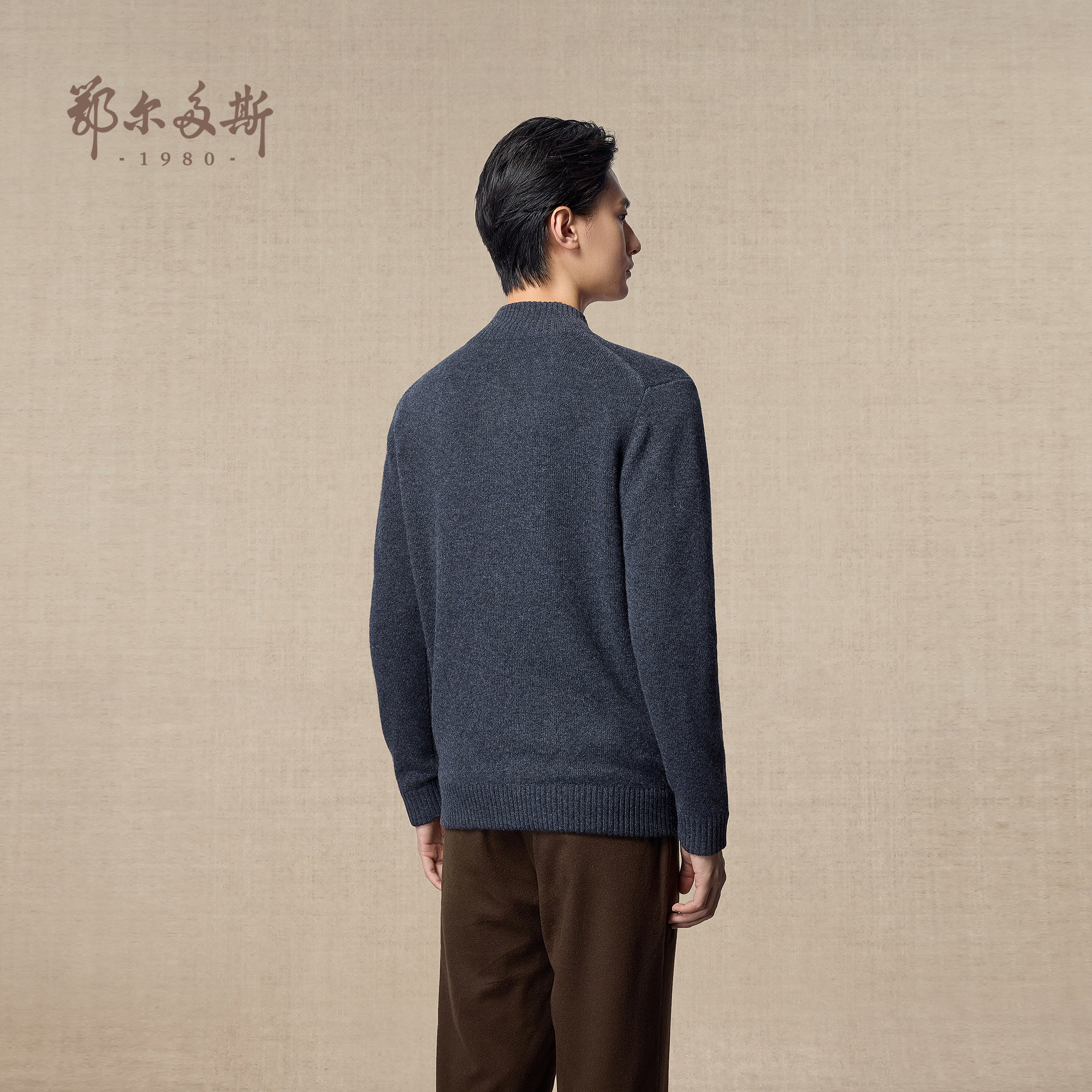 鄂尔多斯1980 男装半高领羊绒开衫25年秋冬新品加厚款保暖针织衫