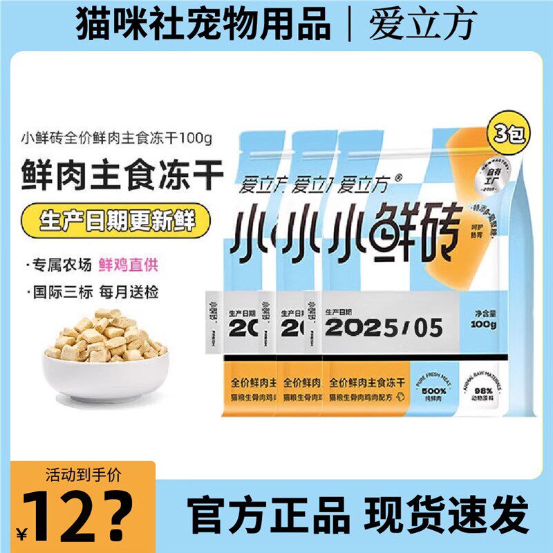 5月爱立方小鲜砖主食冻干成猫幼猫增肥发腮生骨肉高蛋白鸡肉乳鸽