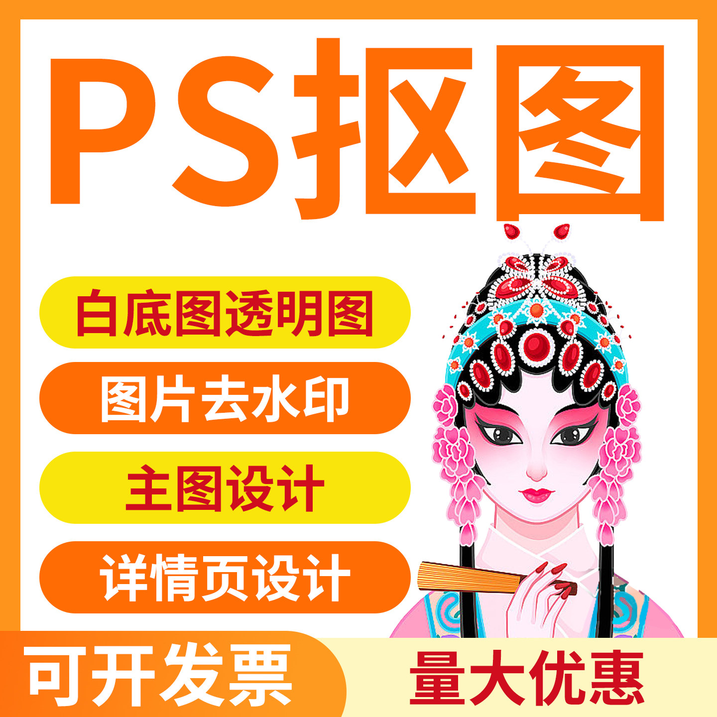 抠图PS图片处理证件照白底换背景P图合成透明底批量人像产品扣图
