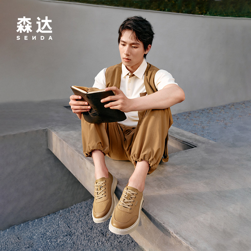 森达板鞋男秋季新款商场同款复古头层牛皮厚底工装休闲鞋K5H08CM5