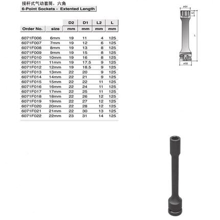 霹雳马套筒3/8"*125接杆式六角气动套筒 批头 6071F006~6071F022