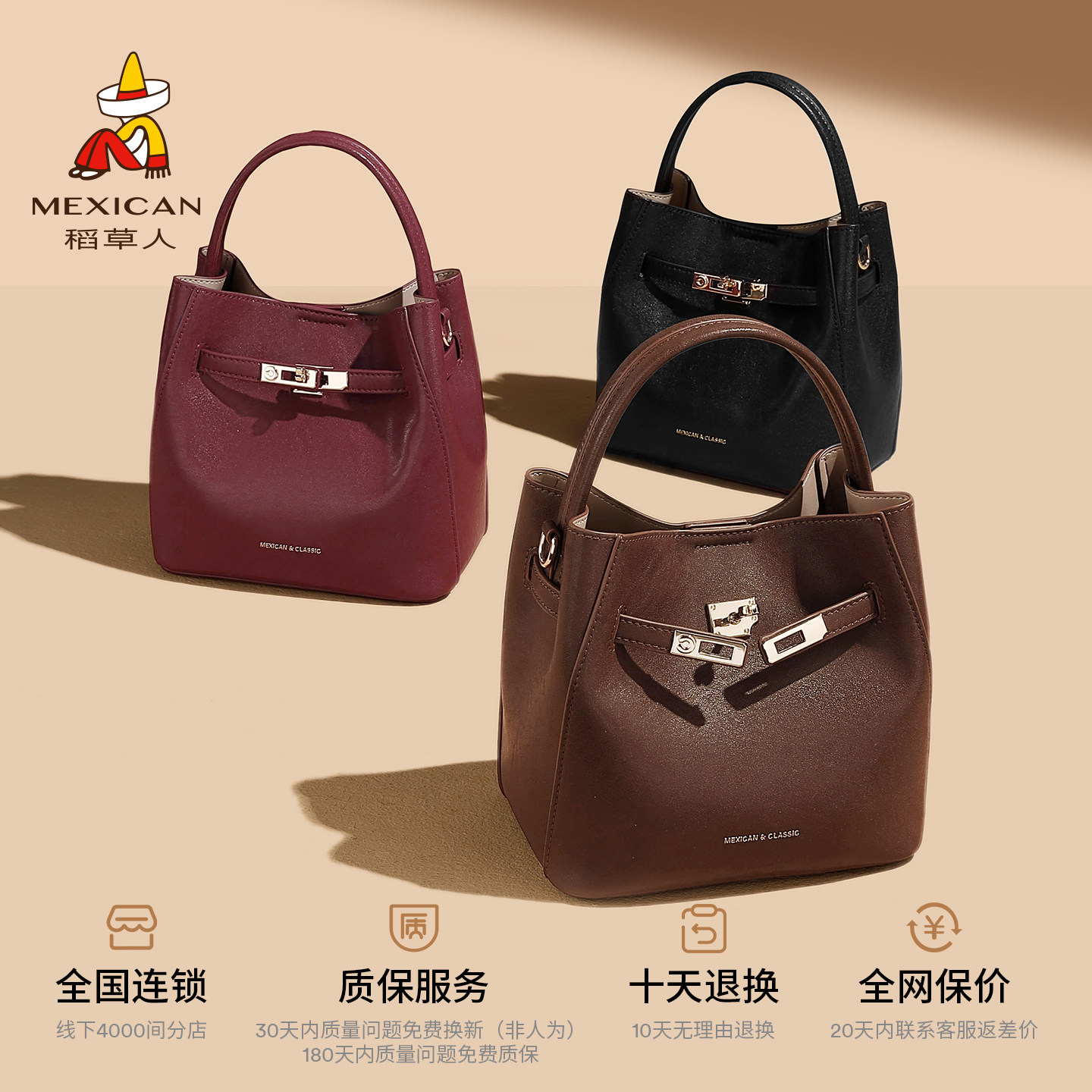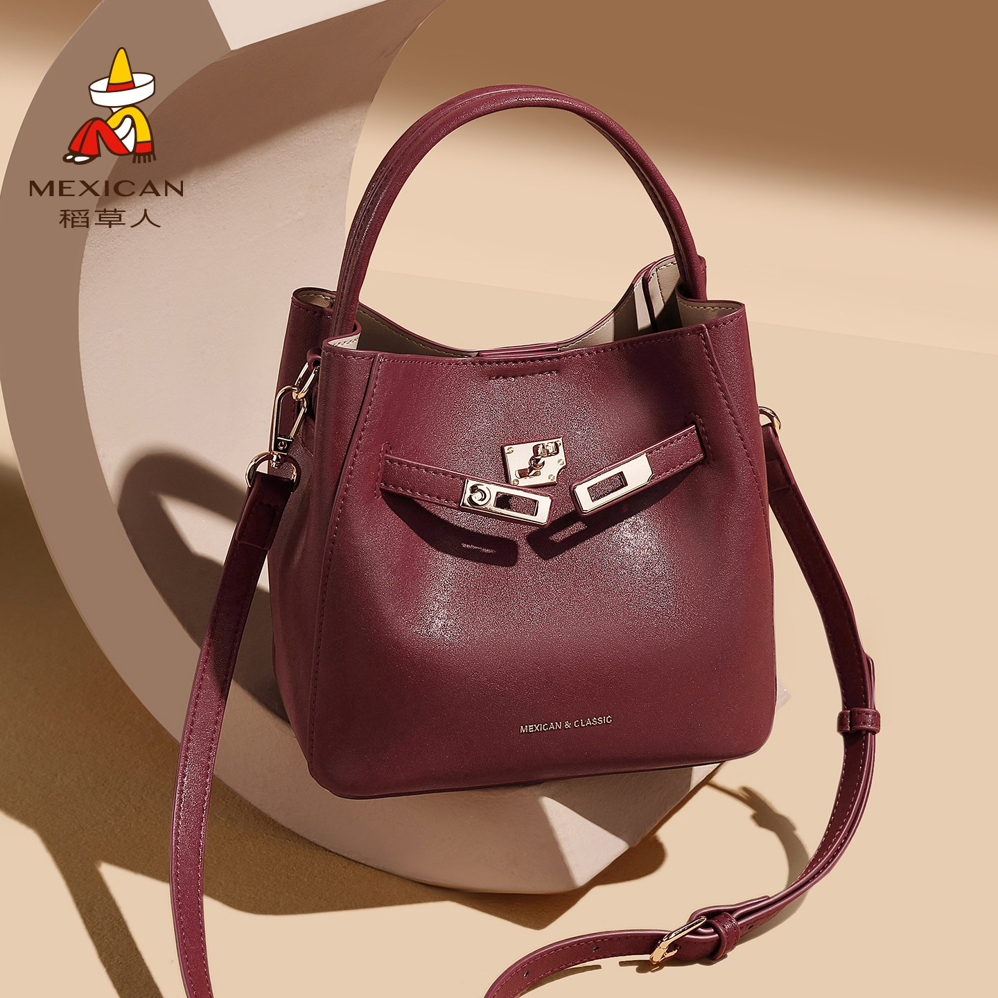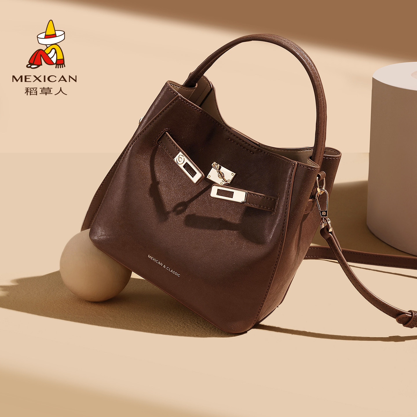 稻草人小众高级感手提包包女新款通勤水桶包大容量单肩斜挎凯莉包