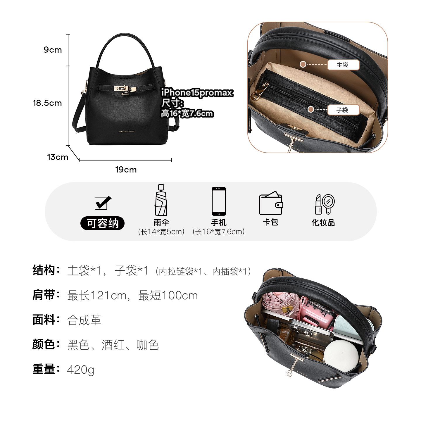 稻草人大容量通勤水桶包斜挎包