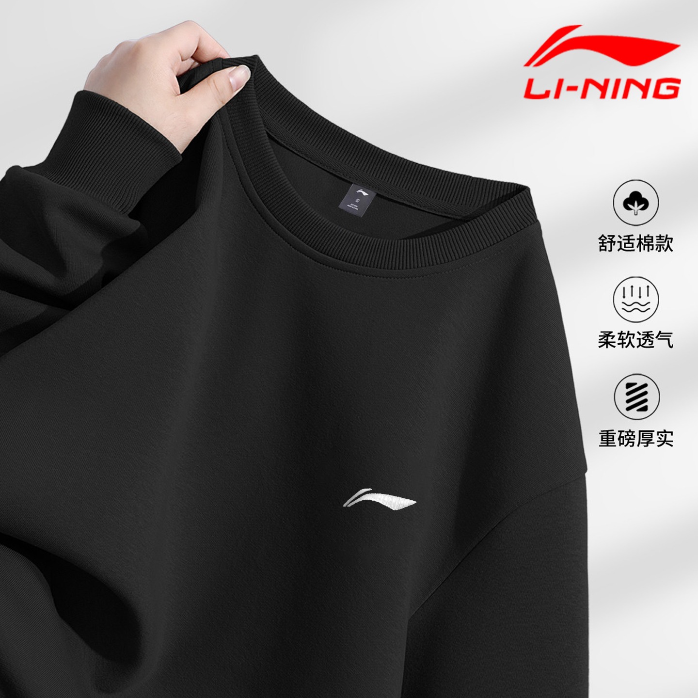李宁卫衣男2025春秋新款青少年圆领长袖T套头衫休闲宽松运动上衣
