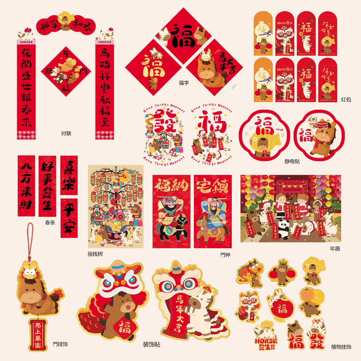 kemoko原创设计马年2026大对联春联新年福字布置装饰乔迁企业定制