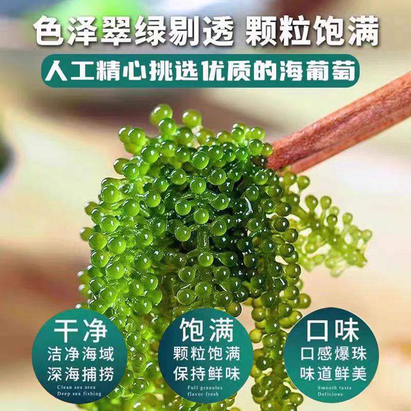 海葡萄新鲜即食盐渍海带新鲜海洋蔬菜绿色鱼子酱海藻菜送芥末酱料