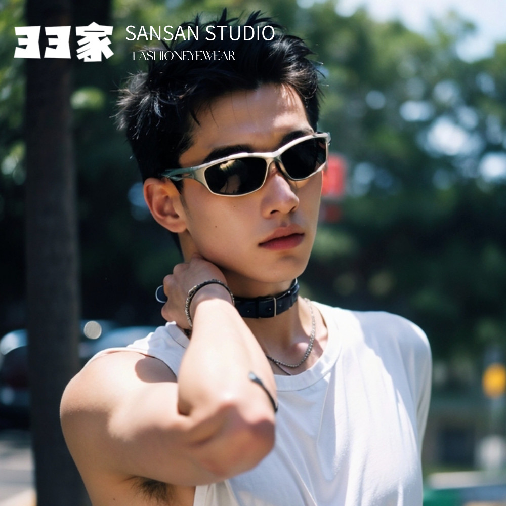 Y2K骑行运动眼镜男潮户外徒步公路银色墨镜近视防风太阳镜女登山