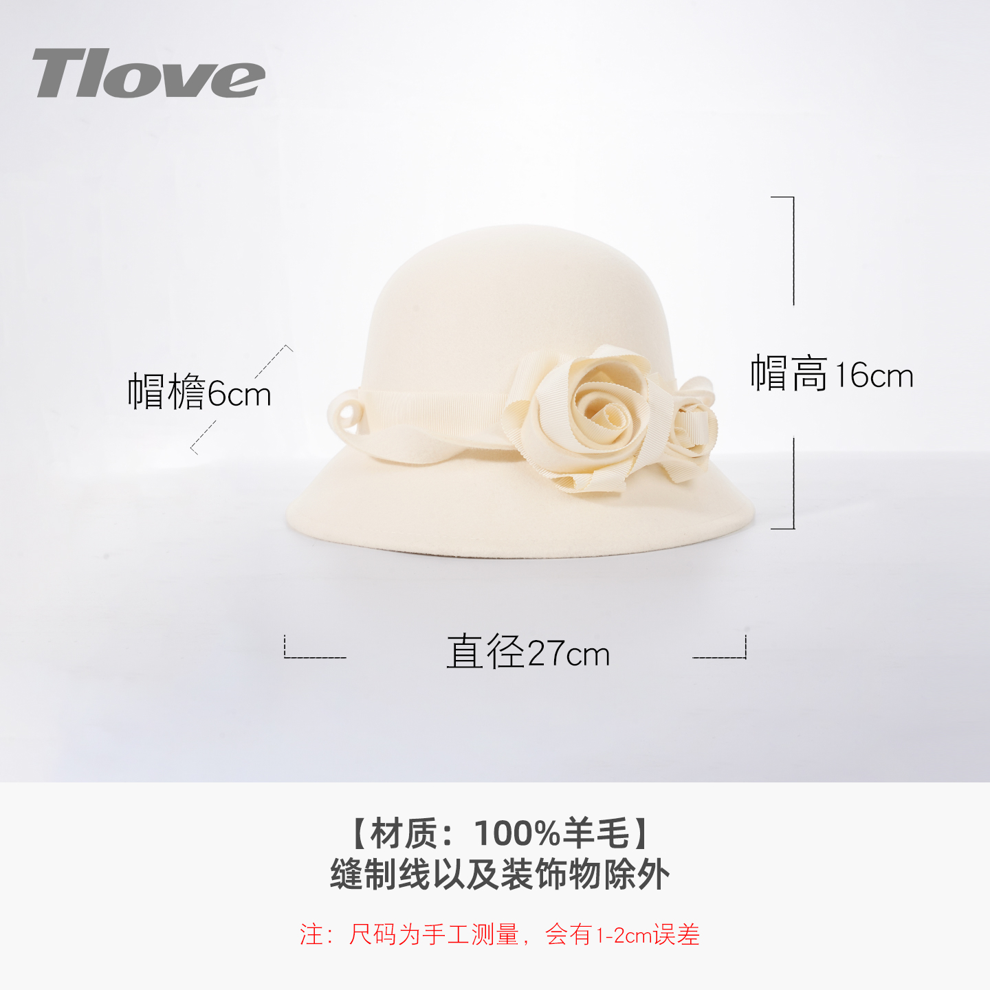 9927+优雅花朵装饰礼帽女士秋冬百搭毛呢盆帽洋气时尚帽子