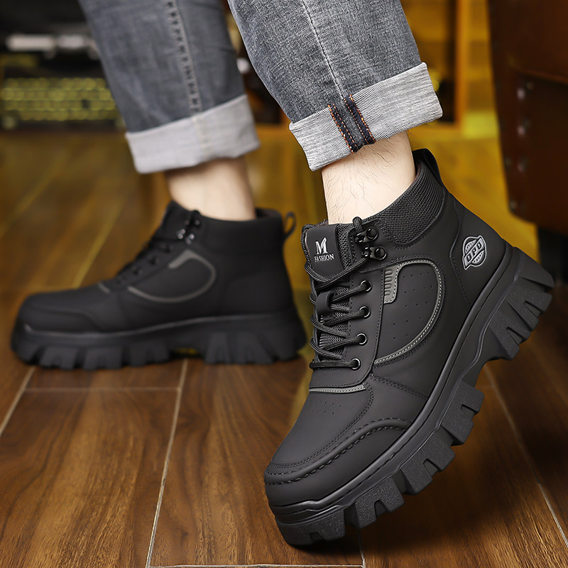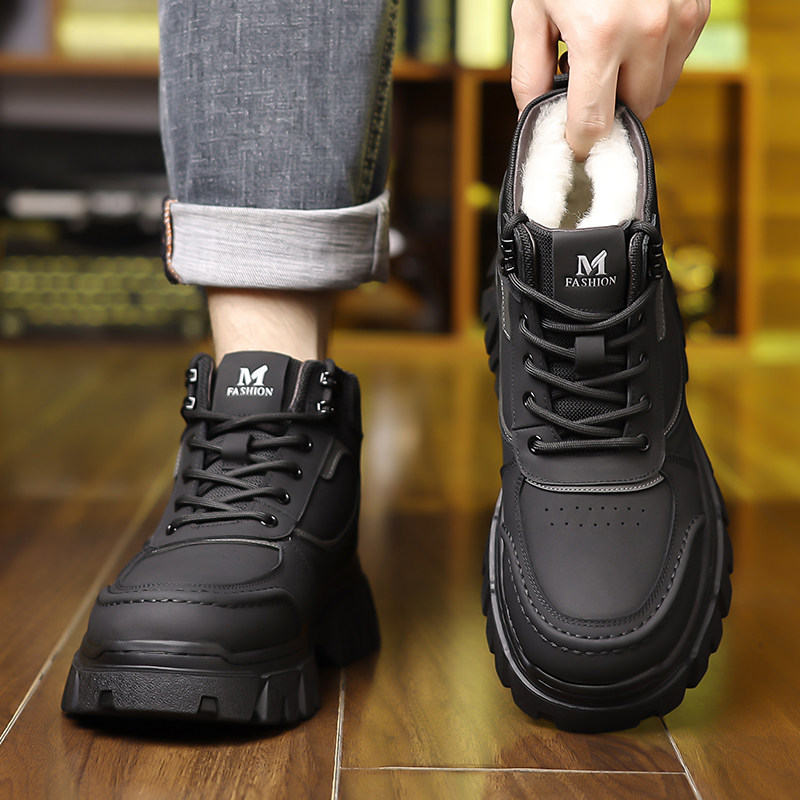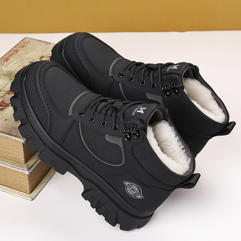 冬季加绒保暖高帮休闲棉鞋真皮鞋
