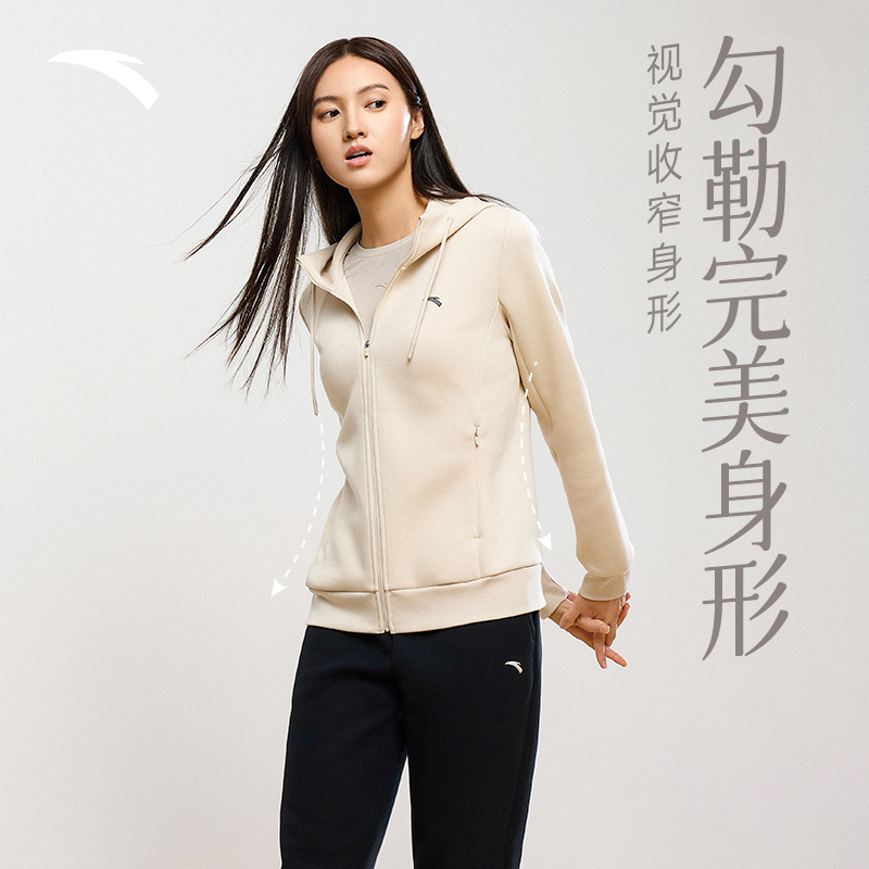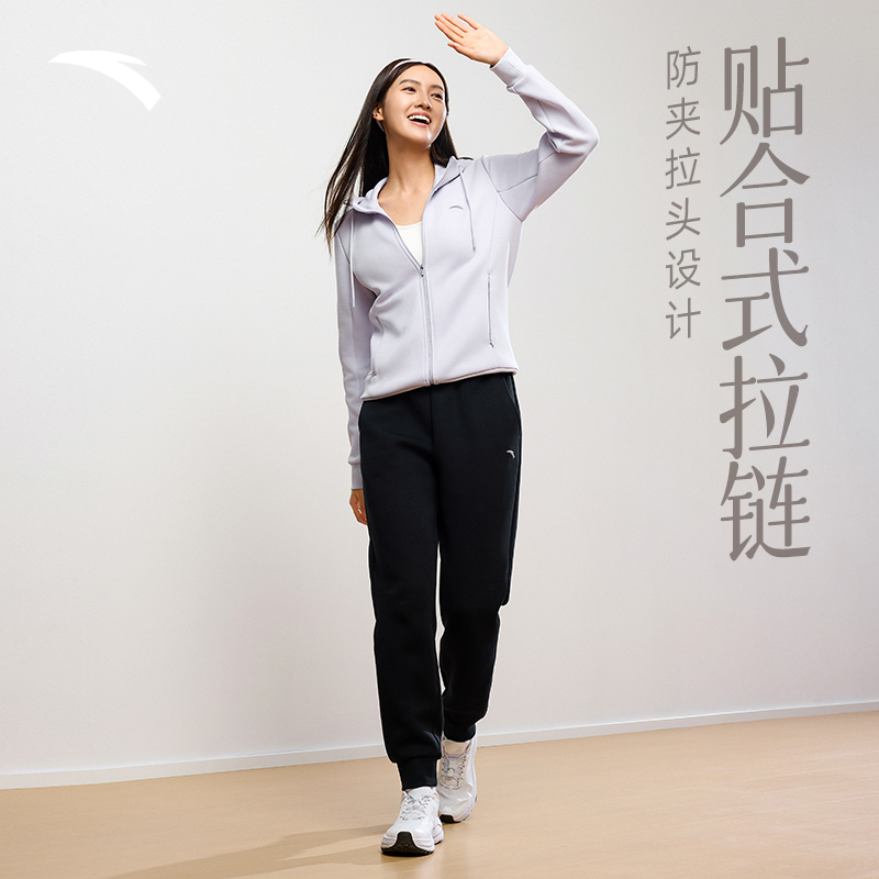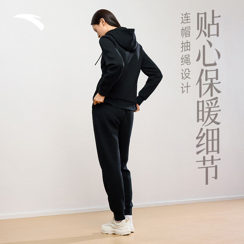 安踏运动套装女款秋冬新品连帽外套长裤运动服两件套妈妈加绒女装