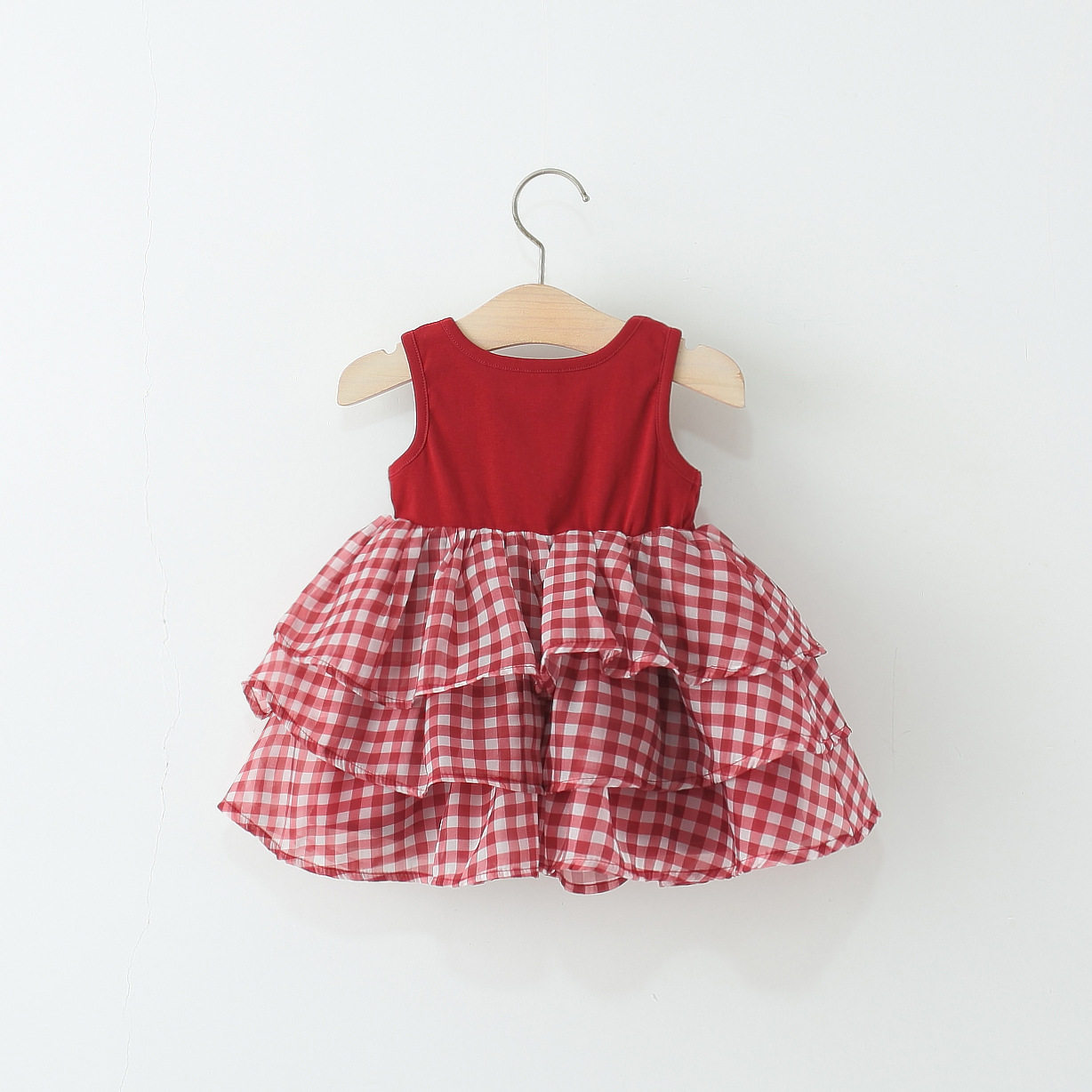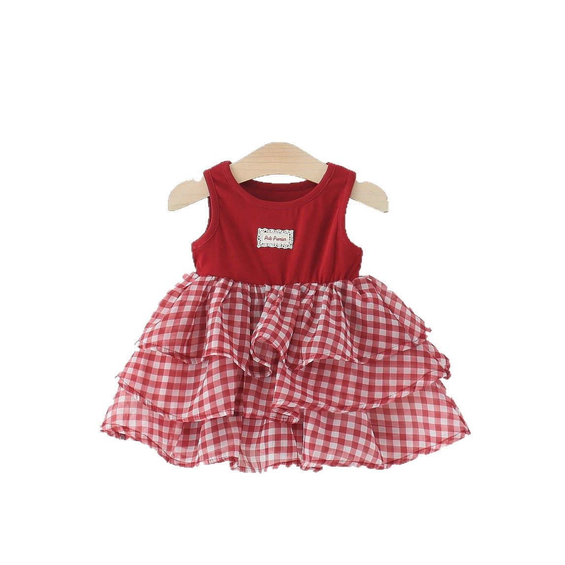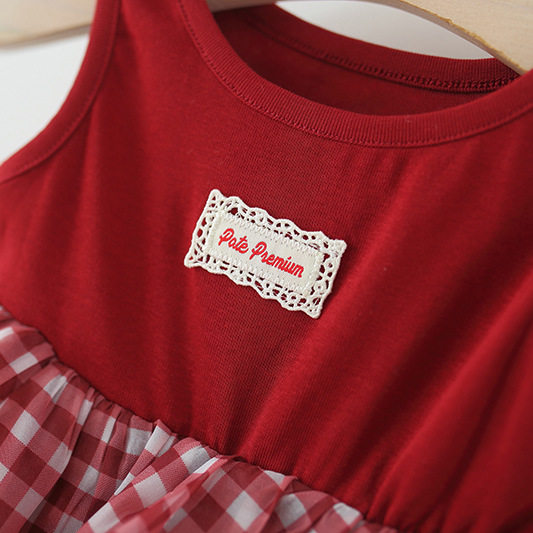 女童无袖连衣裙夏季婴儿童女宝宝格子蛋糕裙拼接背心公主裙子洋气