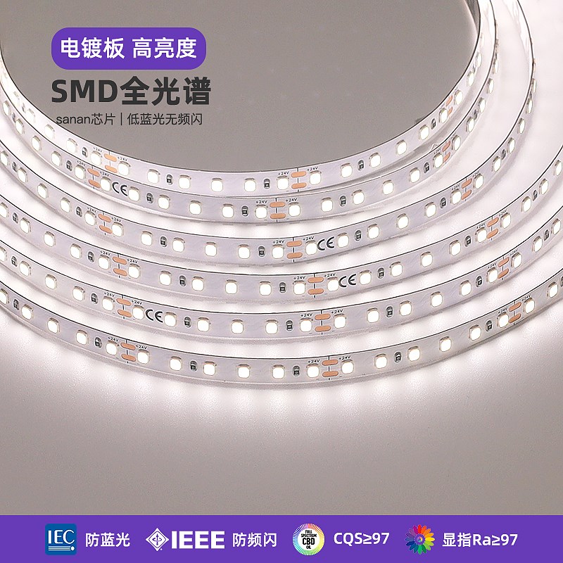 全光谱护眼灯带低压无频闪自粘无主灯24V电镀板高亮灯带led灯条
