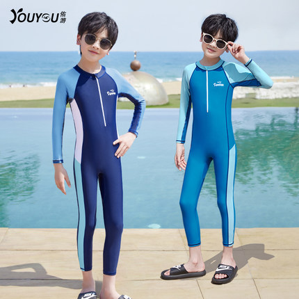 儿童泳衣男童长袖小中大童连体防晒专业速干游泳装夏季宝宝泳衣裤