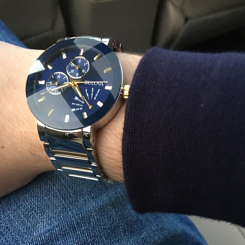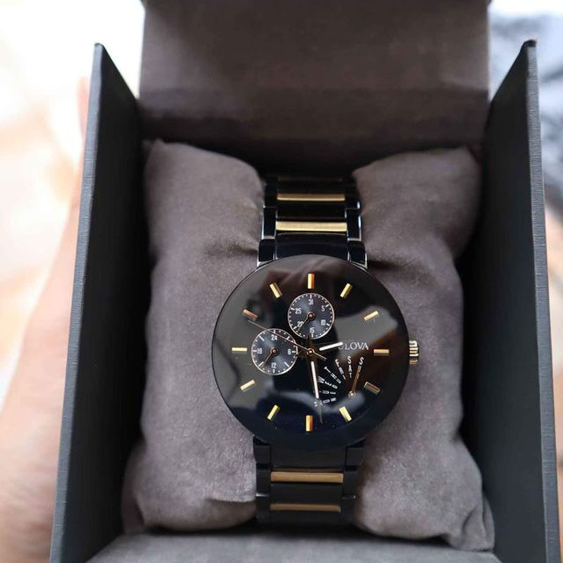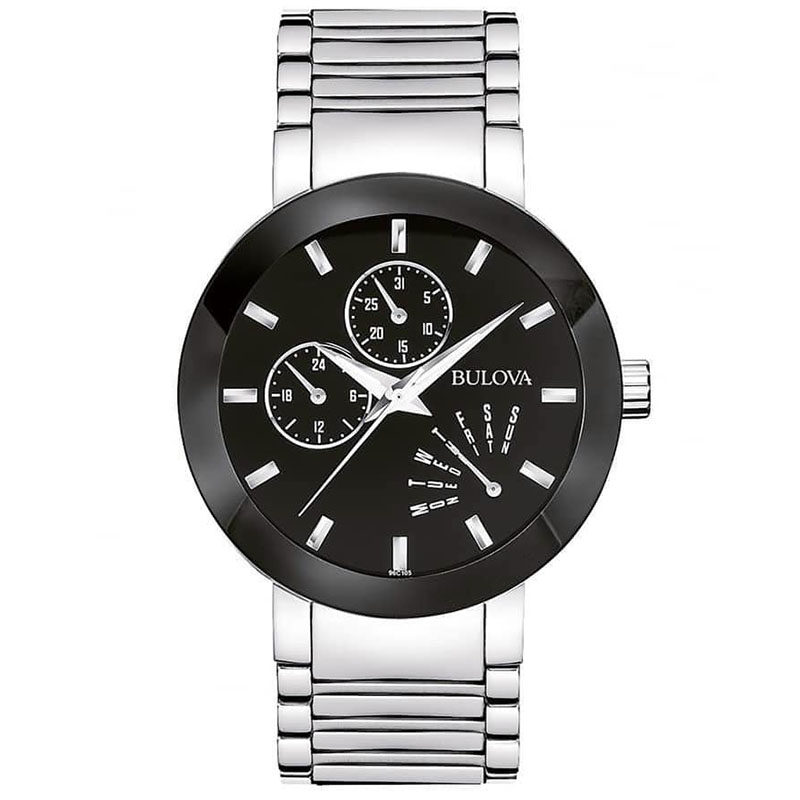 代购正品BULOVA宝路华男表96C105三眼计时无边框钢带银黑男腕表