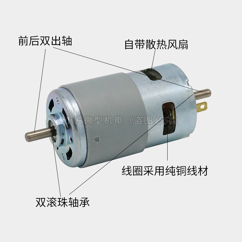 795电机双出轴大功率直流高速马达12-24V纯铜线大扭力双滚珠圆轴