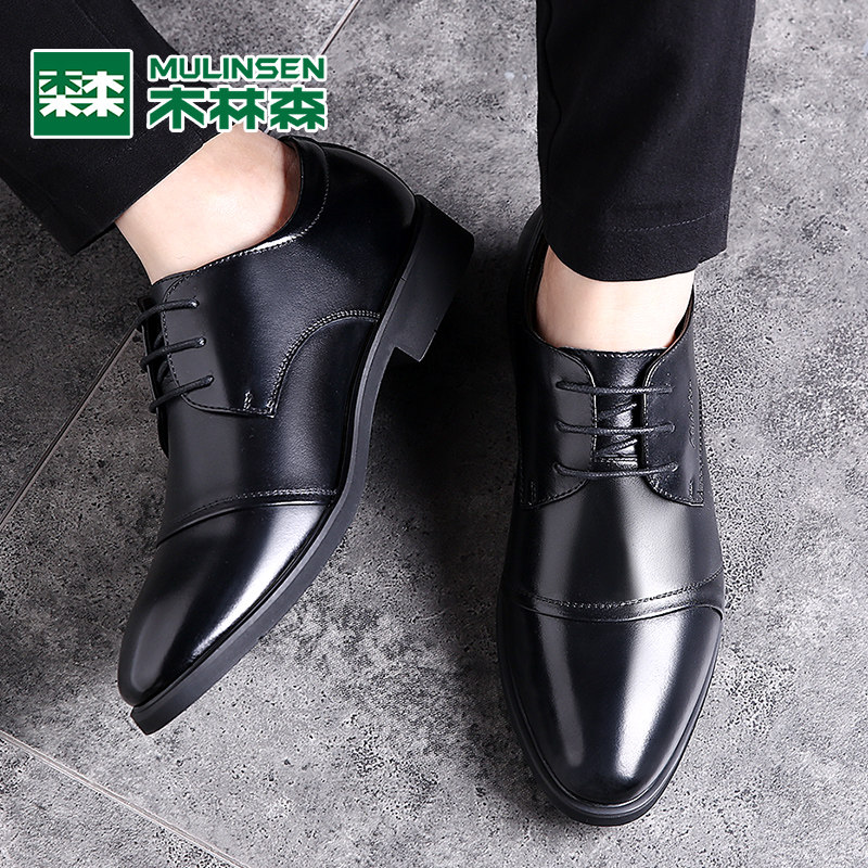 木林森男鞋2025冬季真皮商务正装皮鞋男士英伦休闲黑色内增高鞋子