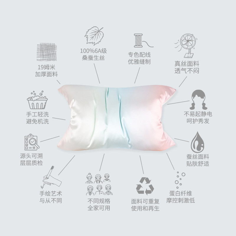 The mole彩虹双面AB版重磅真丝枕套桑蚕丝丝绸成人儿童枕套亲子款