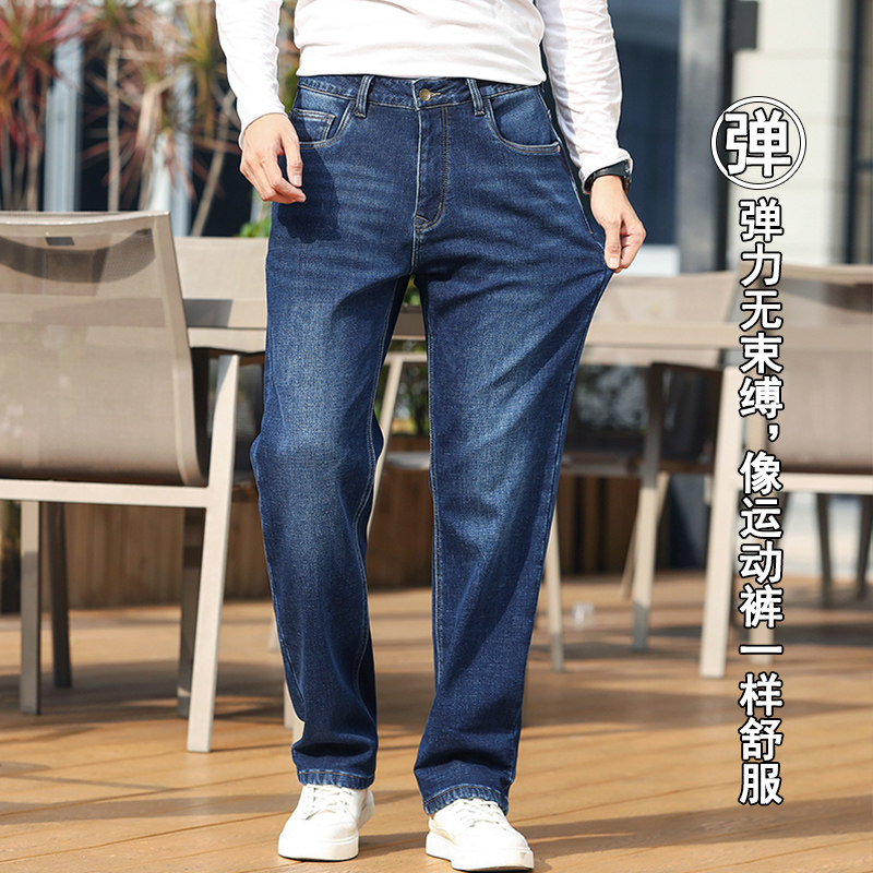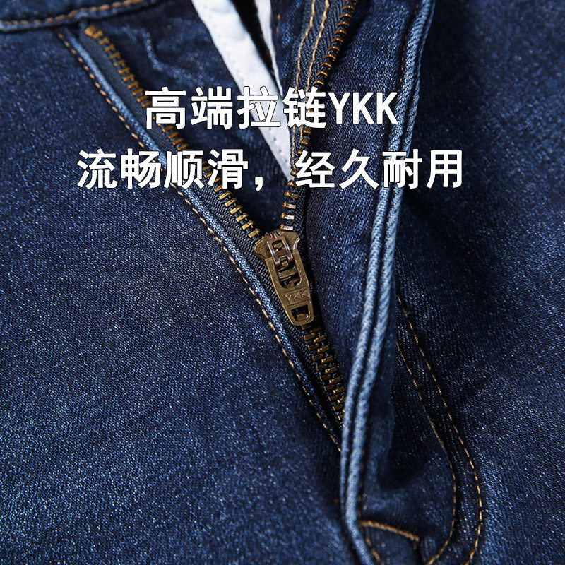 大大牛 猞猁绒抗寒保暖加绒加厚牛仔裤男高腰深裆直筒宽松弹力