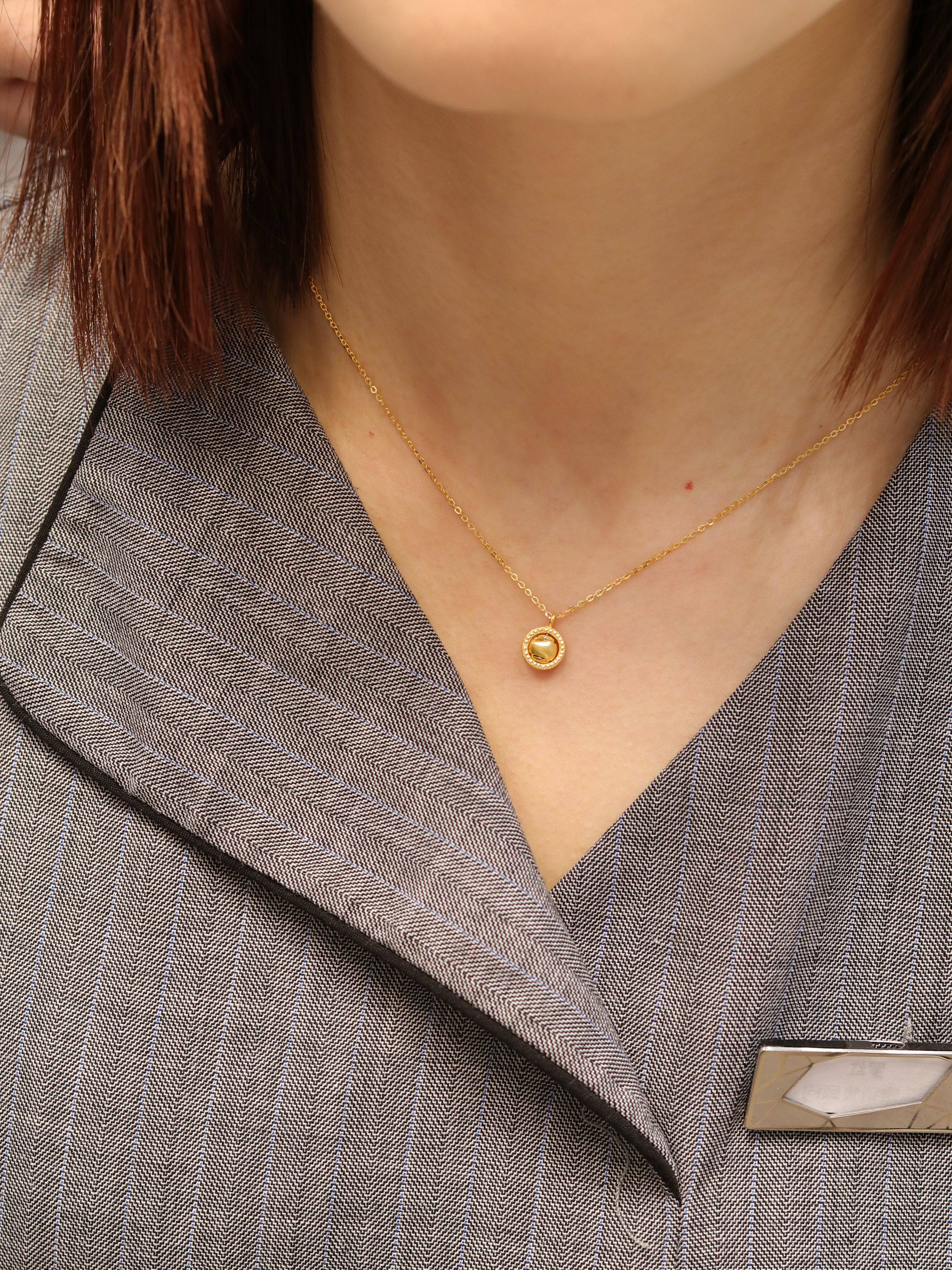 周大福代购 猫眼石地球仪转运珠足金黄金项链女克减80计价F222153