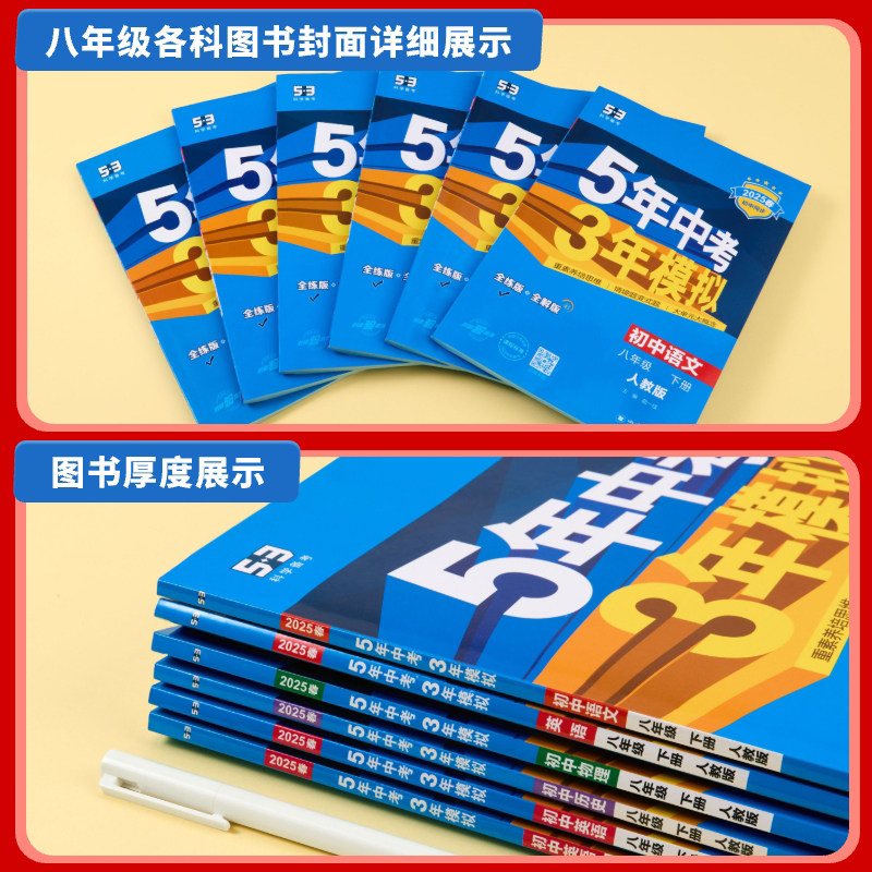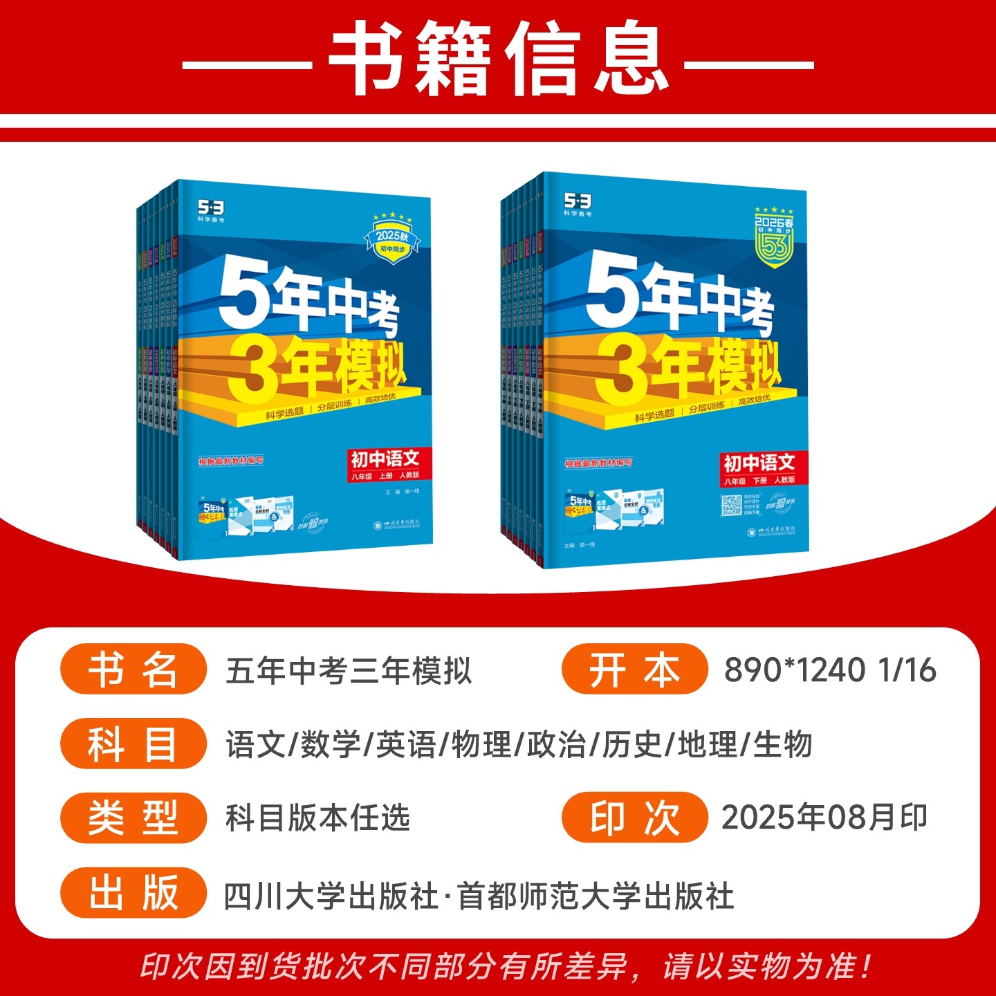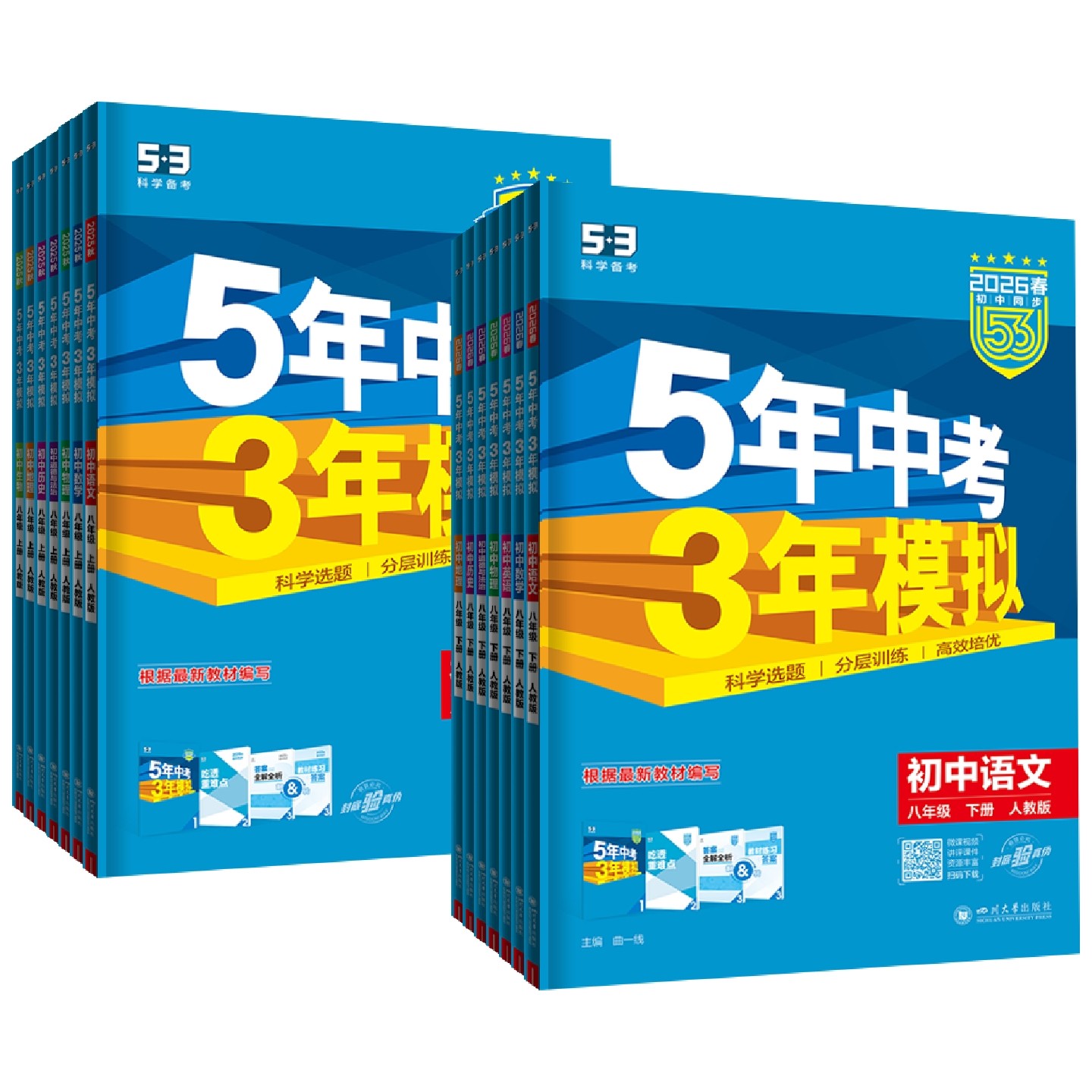 2026春五年中考三年模拟八年级上册下册数学语文英语物理政治历史地理生物人教版 53五三8八年级上数学同步练习册初中初二会考刷题