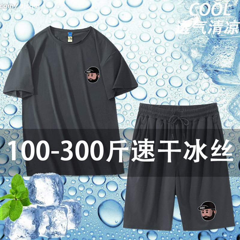 冰丝套装短袖t恤夏季速干休闲男士大码青少年夏季运动空调短裤男