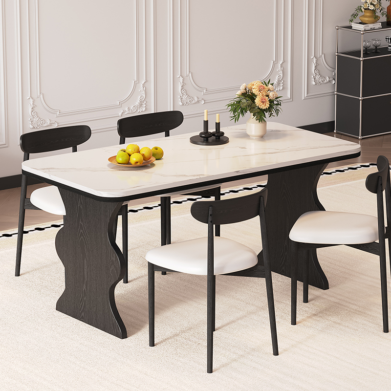 帕美迪涟漪极简加厚岩板收纳实木餐桌椅组合长方形现代北欧
